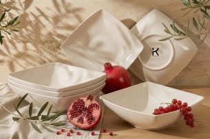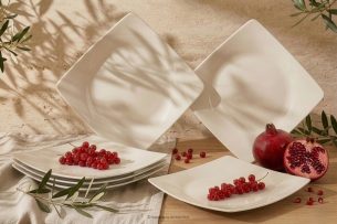 Die Kollektion EPIRI ist ein moderner, quadratischer Teller, der minimalistisches Design mit Funktionalität verbindet. Die geometrische Form der EPIRI Teller verleiht ihnen einen modernen Charme und ihre universelle Form eignet sich sowohl für alltägliche Mahlzeiten als auch für formellere Zusammenkünfte.