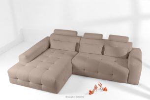 Ecksofa mit Steppung aus Chenille-Stoff links hellbraun