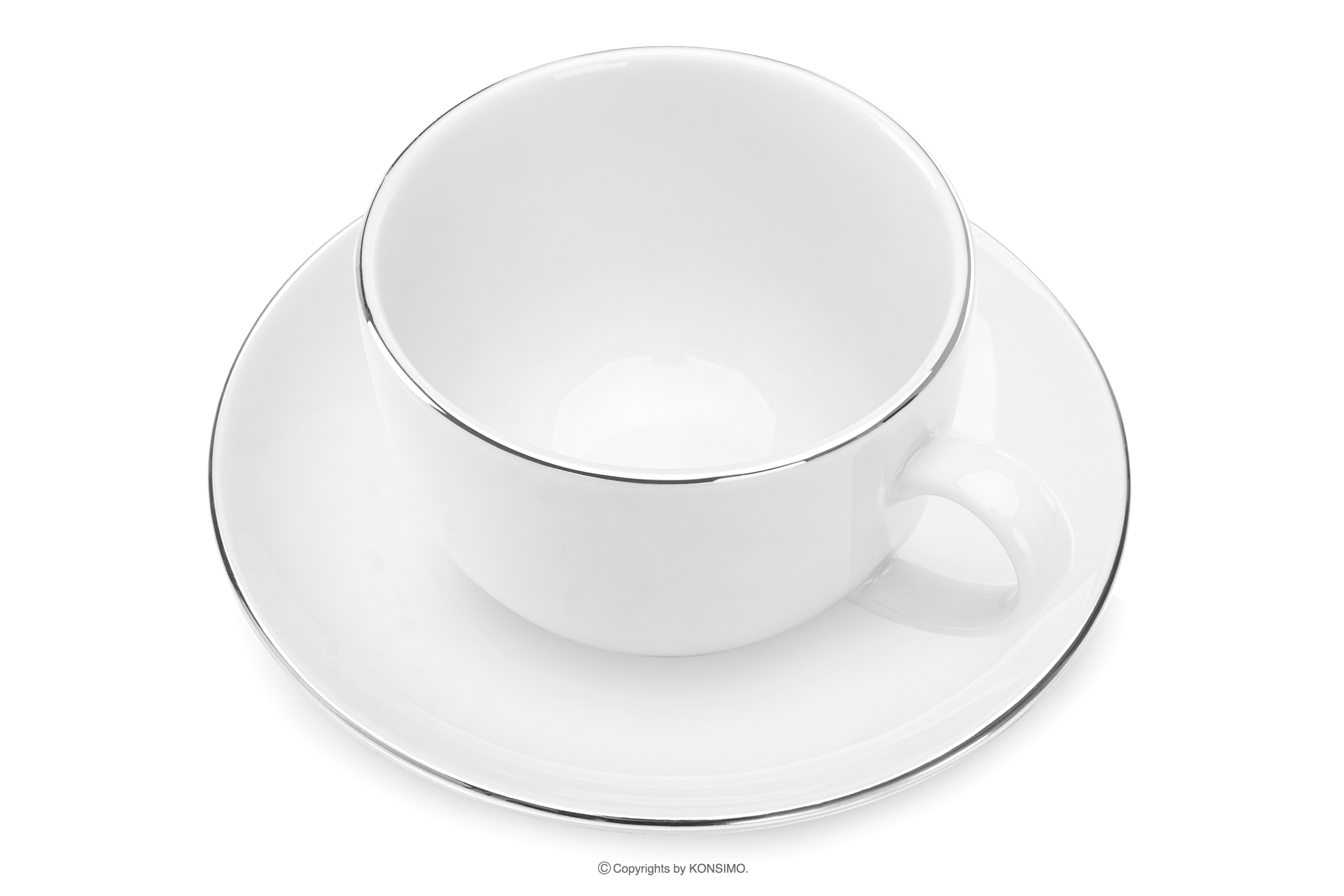 Elegantes Kaffeegeschirr. Die Platinlinie für 6 Personen (18el) ist die perfekte Kombination aus Eleganz und Funktionalität. Die Feinheit des zarten Randes macht MUSCARI einzigartig und besticht durch seinen raffinierten Stil. Die hohe Qualität des für dieses Set verwendeten Porzellans sorgt nicht nur für ein ästhetisches Erscheinungsbild, sondern garantiert vor allem Langlebigkeit und Widerstandsfähigkeit gegen Beschädigungen.
