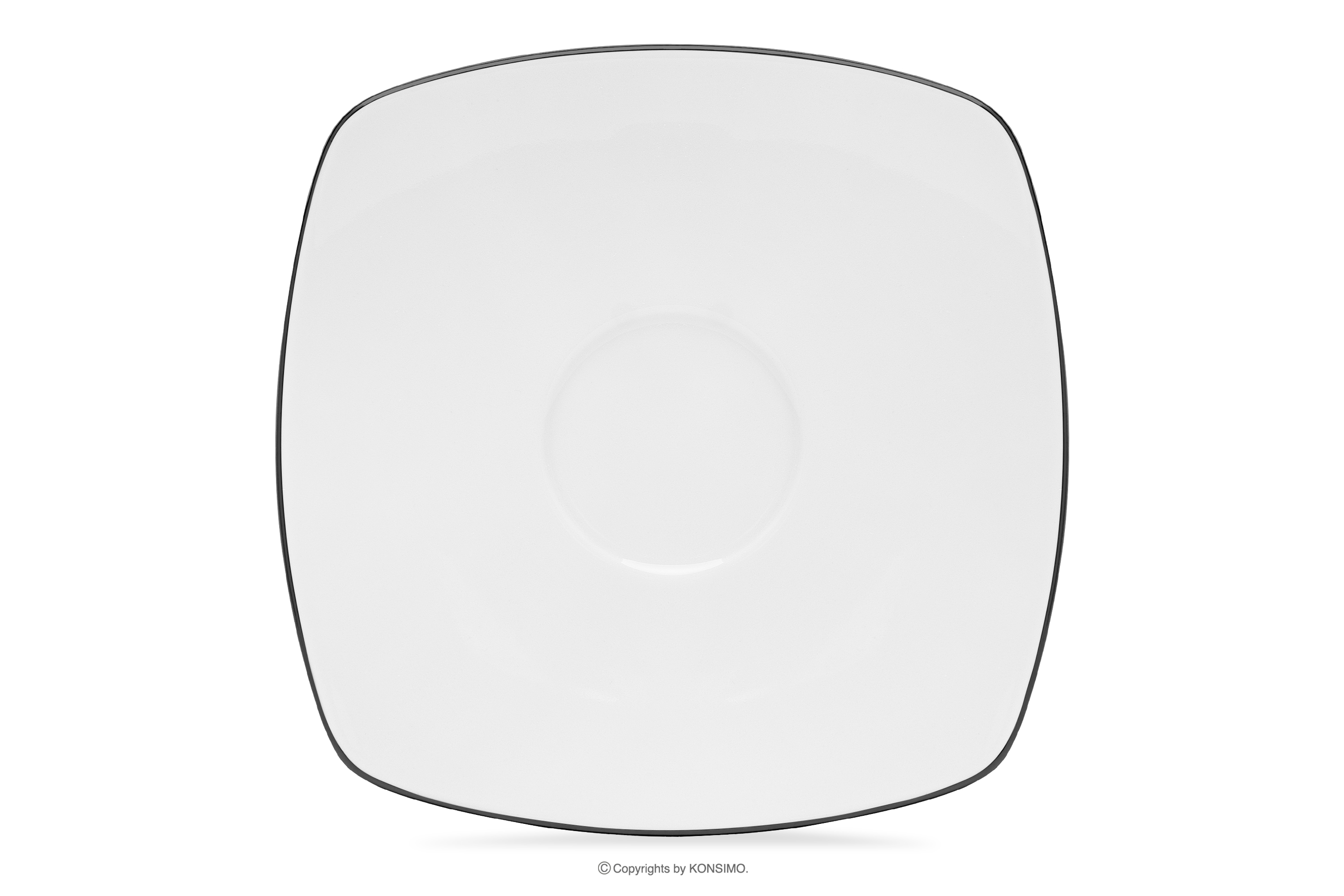 Die Kaffeetassenuntertasse mit schwarzem Rand ist ein Produkt, das eine wahre Quintessenz von Stil und Klasse darstellt. Ihr einzigartiges Design, das auf einer quadratischen Form basiert, verleiht jedem Stück einen modernen Touch. Die zarte Linie am Rand verleiht ihm einen subtilen Glanz und macht ihn nicht nur zu einem perfekten funktionalen, sondern auch zu einem dekorativen Element, das die Aufmerksamkeit auf sich zieht.