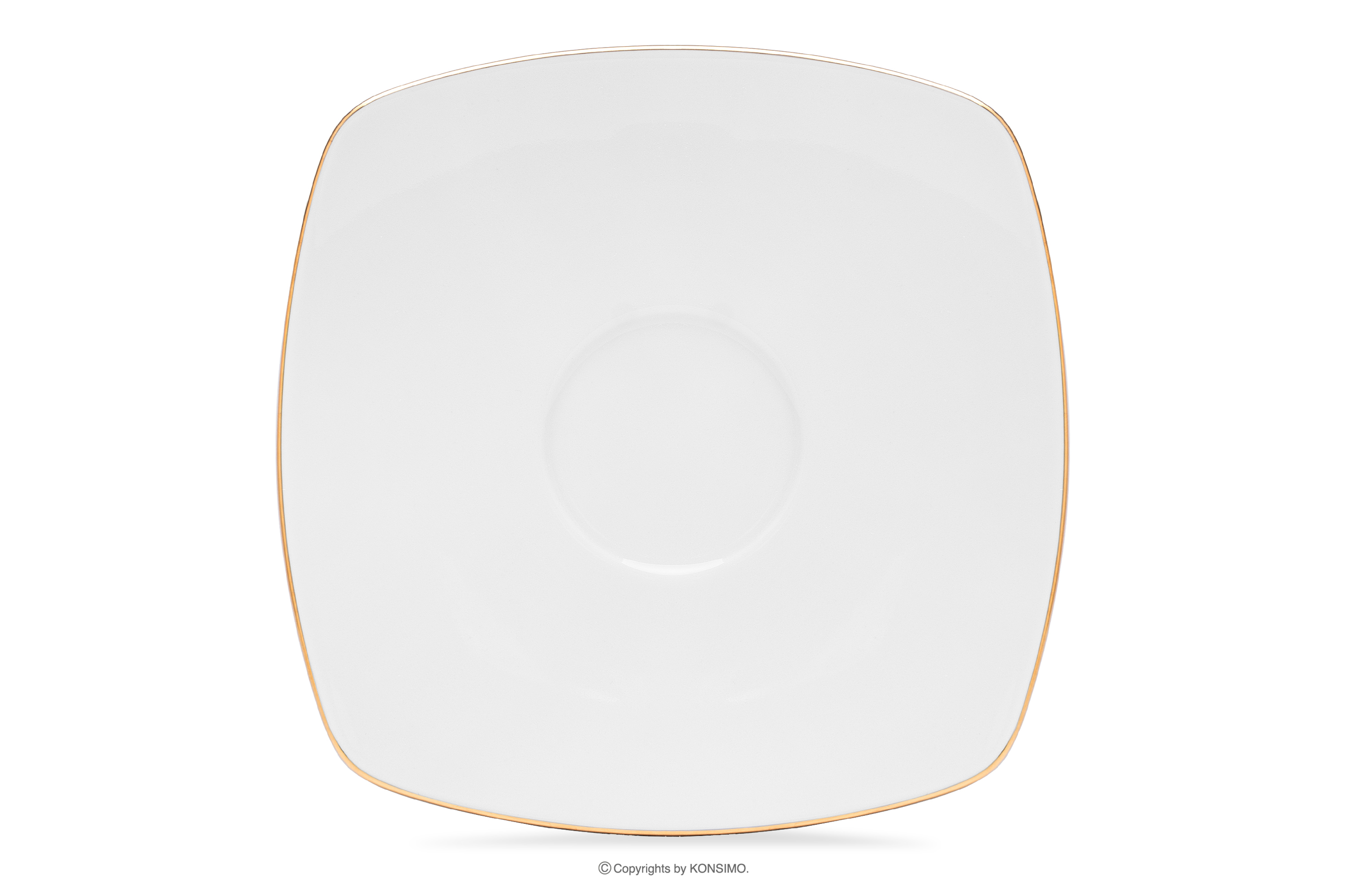 Die Kaffeetassenuntertasse Goldlinie ist ein Produkt, das Stil und Klasse verkörpert. Ihr einzigartiges Design, das auf einer quadratischen Form basiert, verleiht jedem Stück einen modernen Touch. Die zarte Linie am Rand verleiht ihm einen subtilen Glanz und macht ihn nicht nur zu einem perfekten funktionalen, sondern auch zu einem dekorativen Element, das die Aufmerksamkeit auf sich zieht.