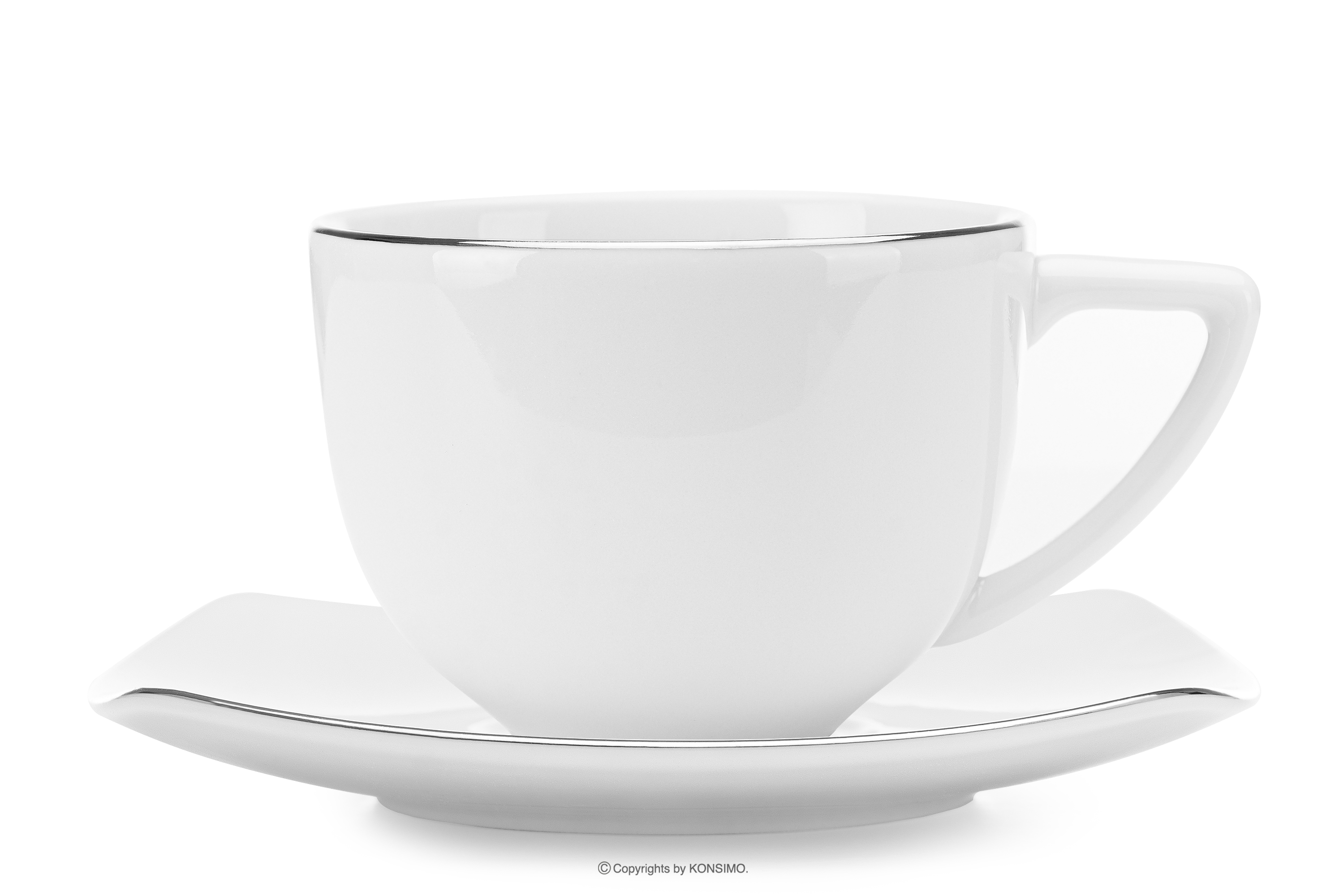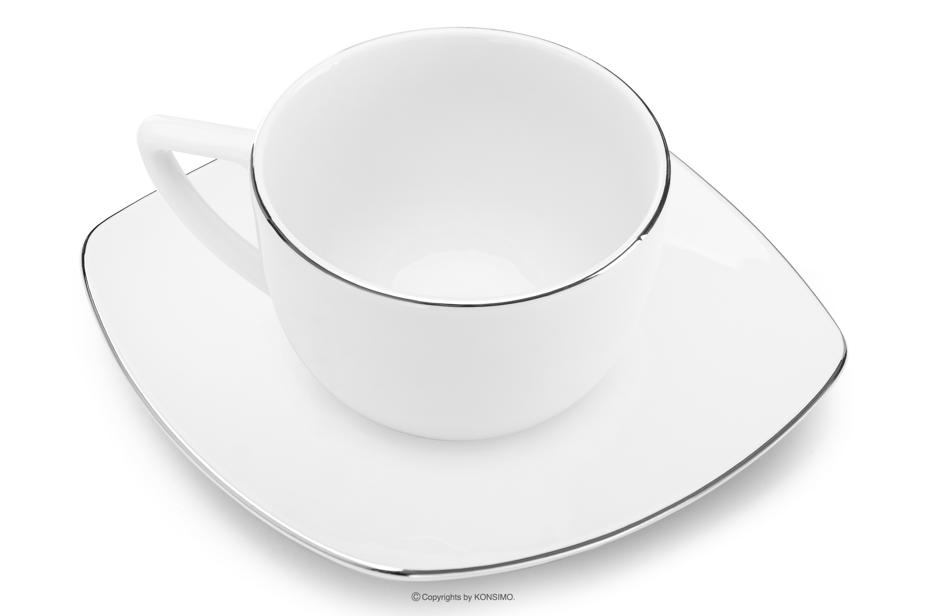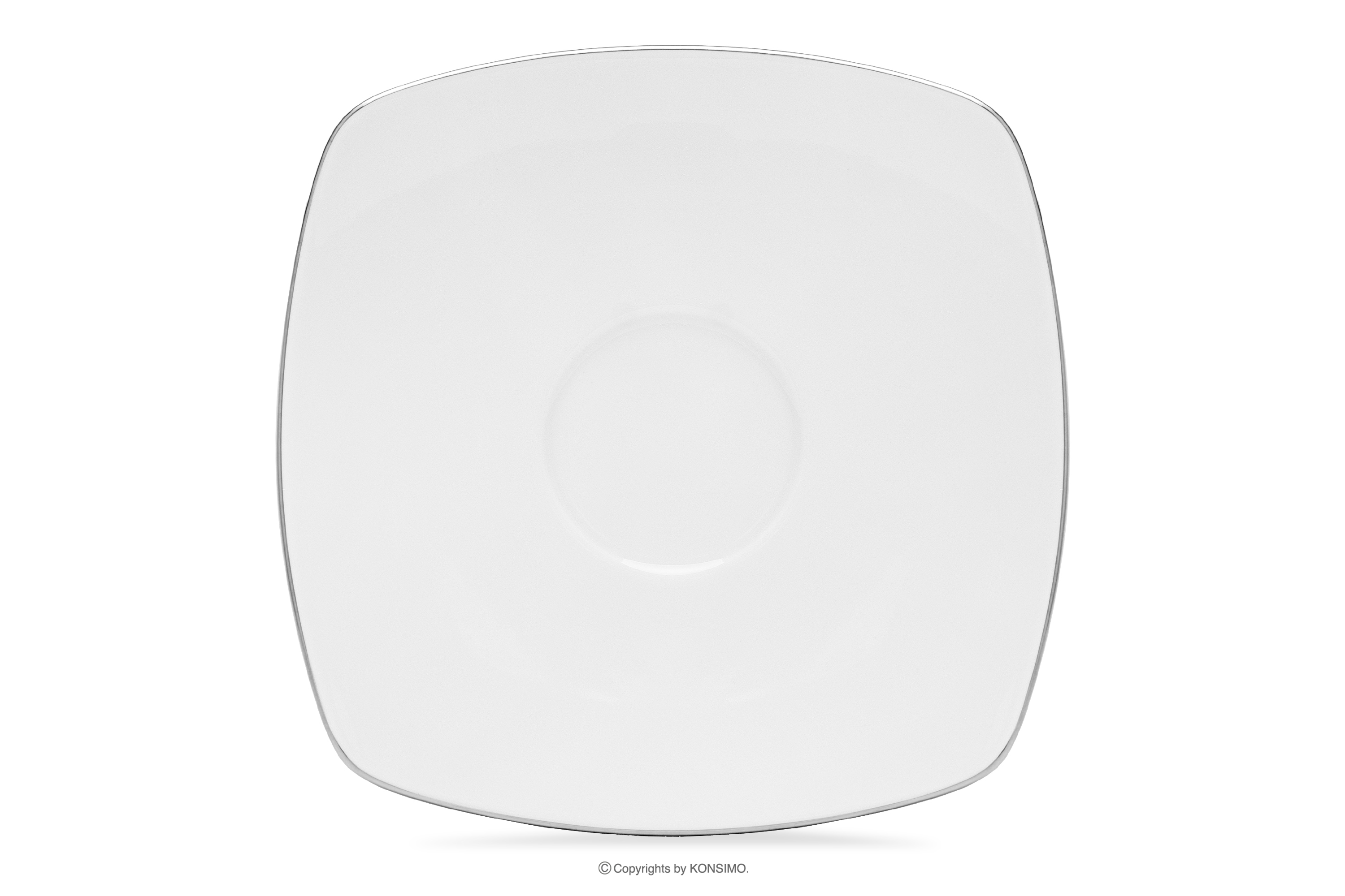 Die Kaffeetassenuntertasse der Platinlinie ist ein Produkt, das Stil und Klasse verkörpert. Ihr einzigartiges Design, das auf einer quadratischen Form basiert, verleiht jedem Stück einen modernen Touch. Die zarte Linie am Rand verleiht ihm einen subtilen Glanz und macht ihn nicht nur zu einem perfekten Funktionselement, sondern auch zu einem dekorativen Element, das die Aufmerksamkeit auf sich zieht.