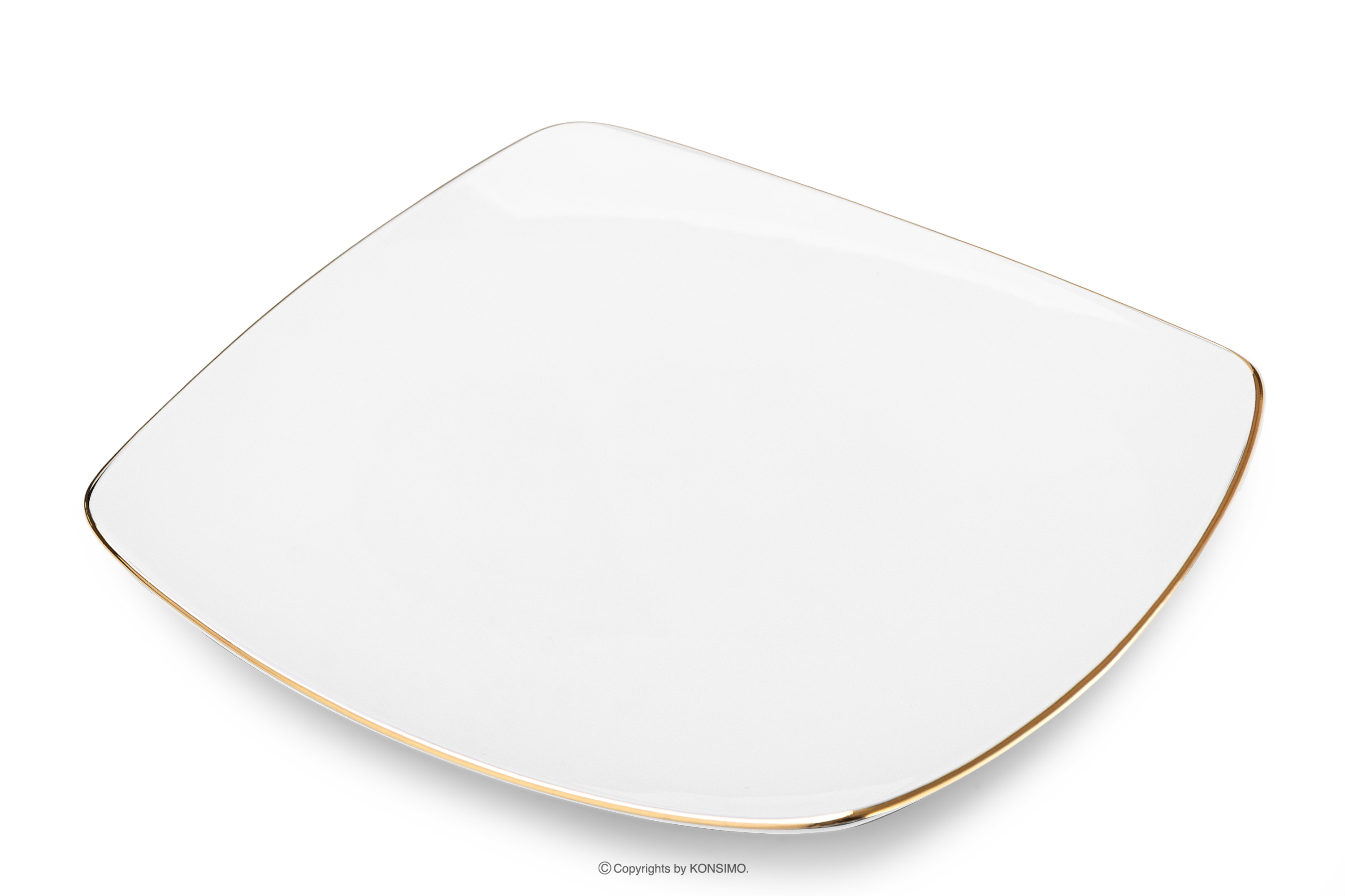 Der Dessertteller der Goldlinie ist ein Produkt, das eine wahre Quintessenz von Stil und Klasse darstellt. Sein einzigartiges Design, das auf einer quadratischen Form basiert, verleiht jedem Stück einen modernen Charakter. Die zarte Linie am Rand verleiht ihm einen subtilen Glanz, der ihn nicht nur zu einem perfekten Funktionselement, sondern auch zu einem dekorativen Element macht, das die Aufmerksamkeit auf sich zieht.