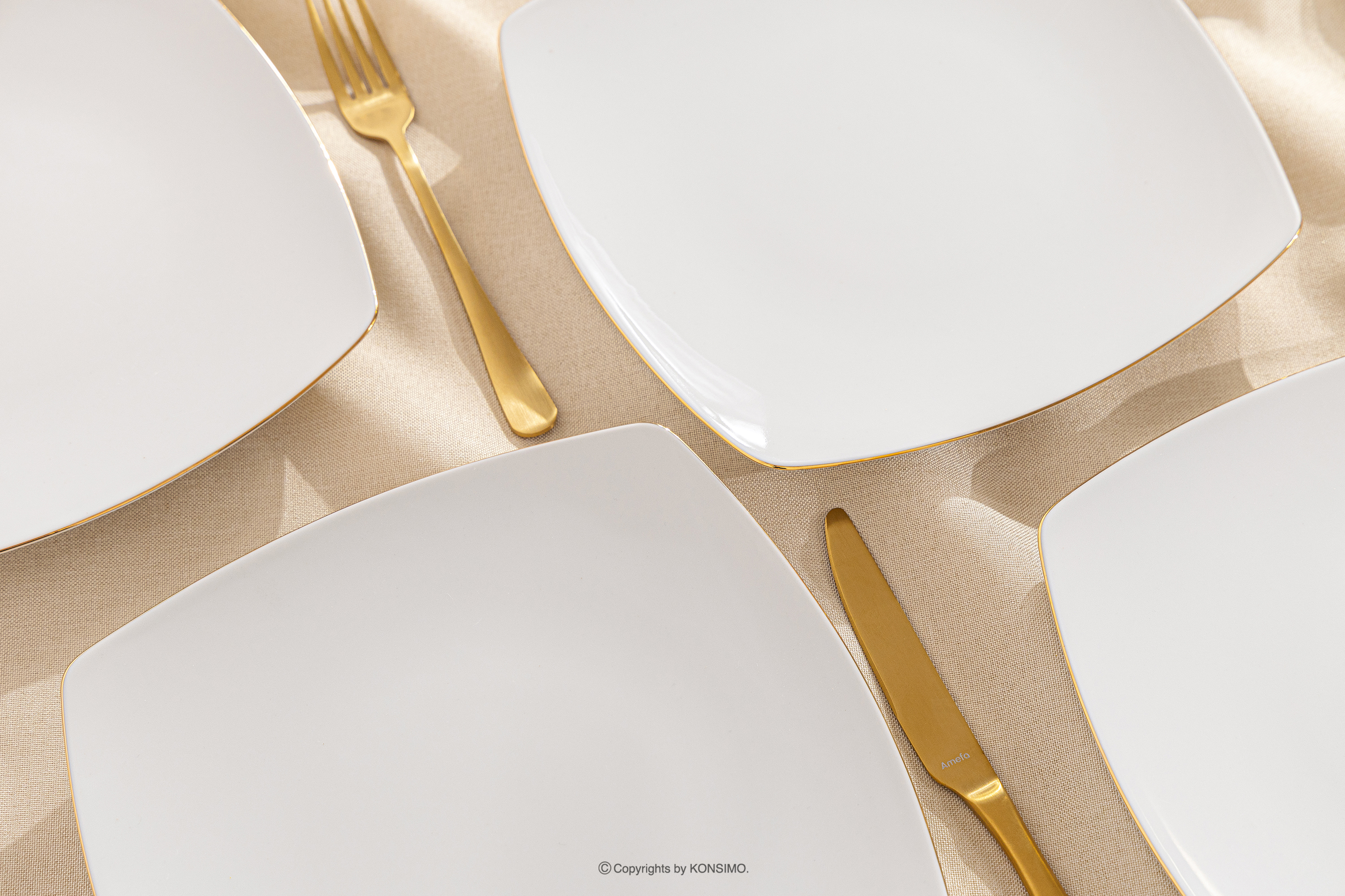 CARLINA Elegantes quadratisches Speiseteller-Set mit Goldlinie (6-tlg.)