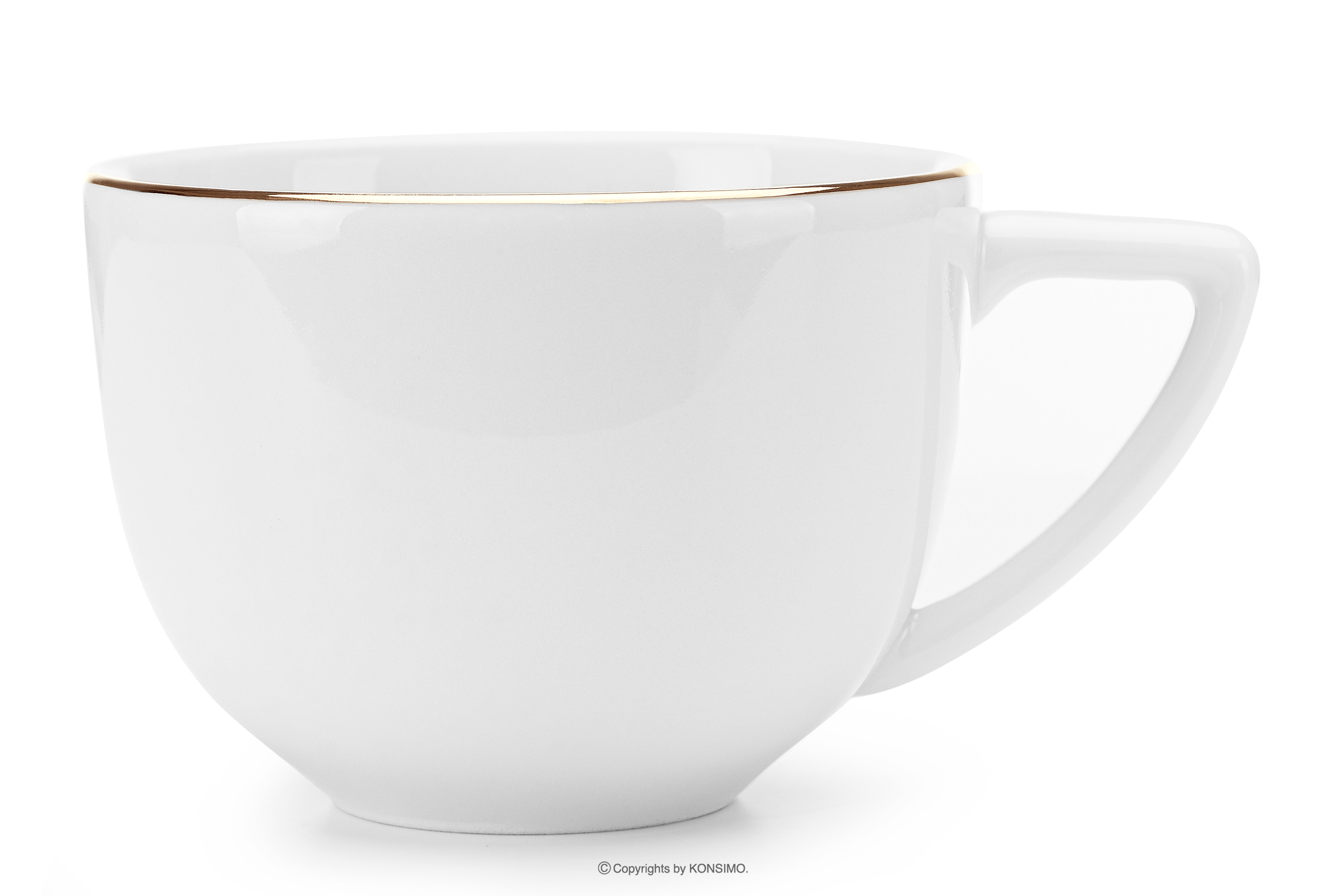 Das elegante quadratische Ess- und Kaffeeservice für 6 Personen (30 tlg) der Goldlinie ist ein Produkt, das eine wahre Quintessenz von Stil und Klasse darstellt. Sein einzigartiges Design, das auf einer quadratischen Form basiert, verleiht jedem Stück einen modernen Charakter. Die zarte Linie am Rand verleiht ihm einen subtilen Glanz, der es nicht nur perfekt für seine Funktion macht, sondern auch zu einem dekorativen Element, das die Aufmerksamkeit auf sich zieht.