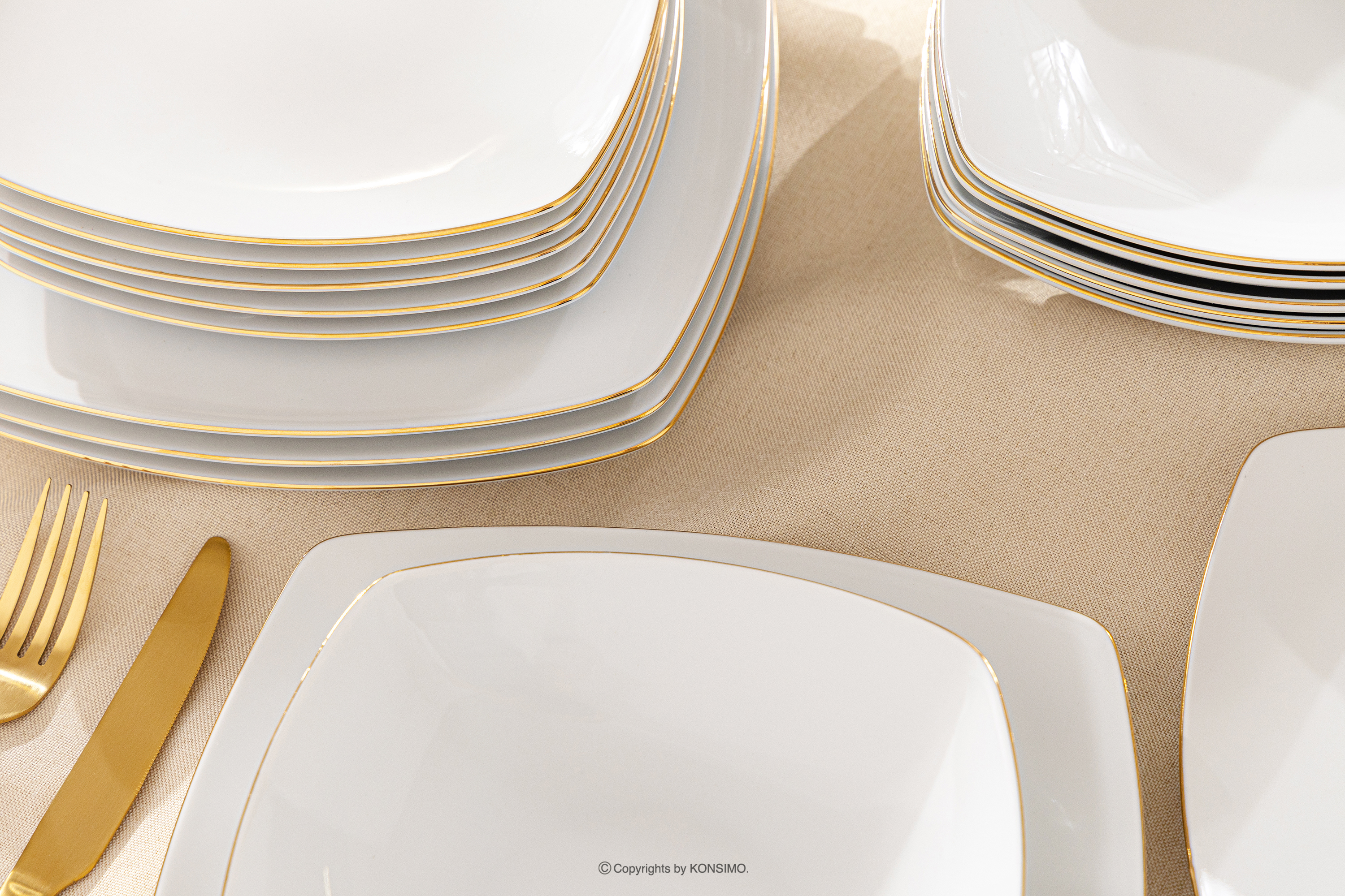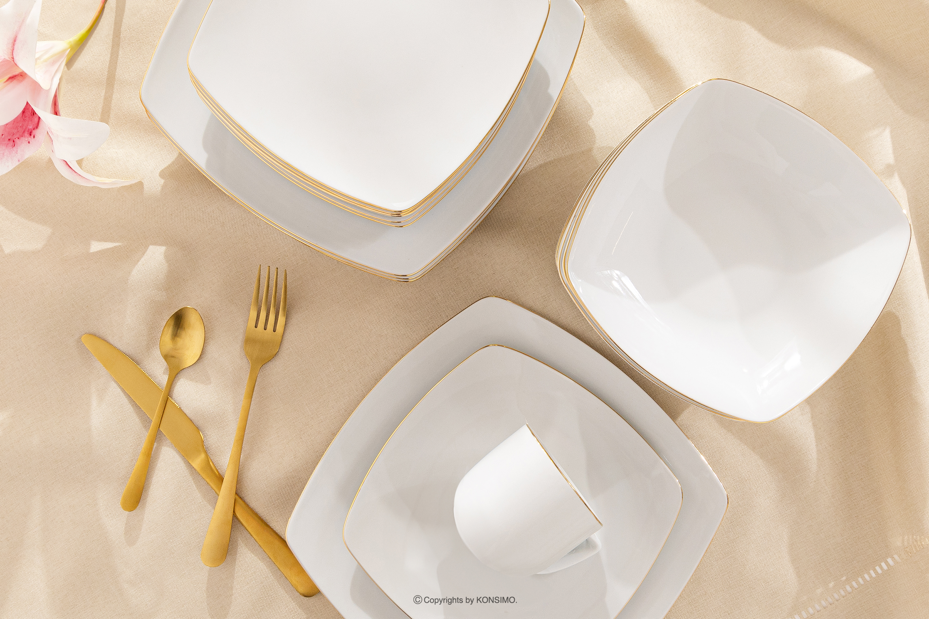 CARLINA Mehr aus der Kollektion Elegantes quadratisches Kaffee- & Tafelservice mit Goldlinie für 6 Personen (30-tlg.)- Farbe Goldlinie
