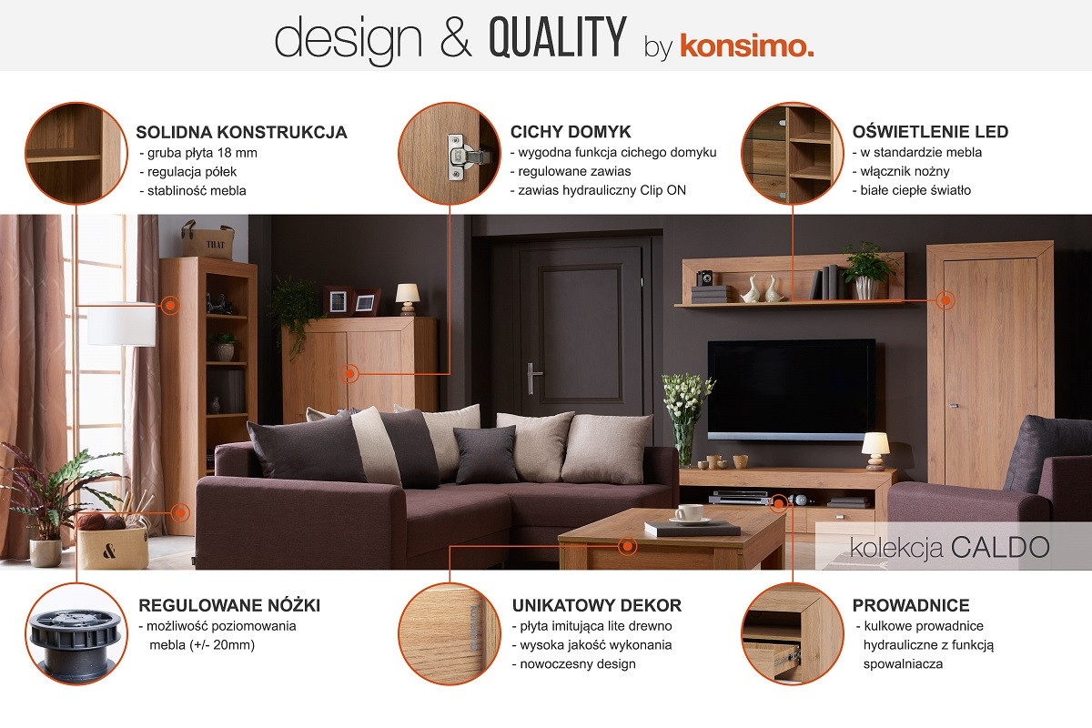 Zimmerpflanzen, Bücher, Dekorationen und Dekorationen - dies sind nur einige der Elemente der häuslichen Ausstattung, die es wert sind, zur Schau gestellt zu werden. Das moderne Hängeregal aus der CALDO-Kollektion wurde aus sehr robustem Holzfaserplatten hergestellt, sodass es selbst schweres Gewicht problemlos tragen kann. Der holzähnliche Laminat schützt die Oberfläche vor Abnutzung und Beschädigung und erleichtert zudem die Pflege des Hängeregals in einwandfreiem Zustand.