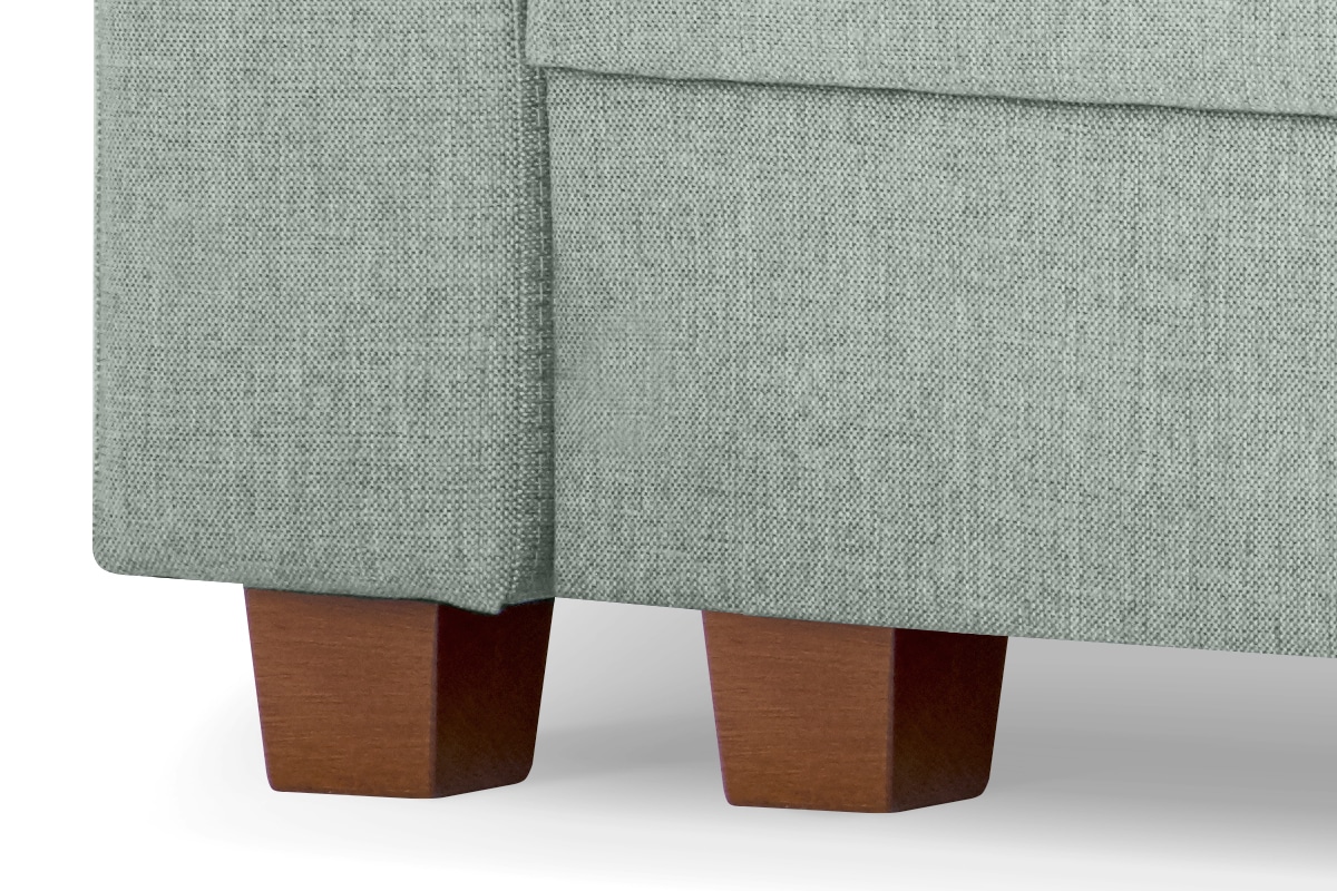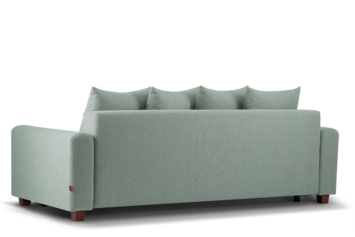Das mintfarbene REVO-Schlafsofa wurde mit Funktionalität im Hinterkopf entworfen. Tagsüber fungiert es als bequemes Sofa und verwandelt sich nachts in ein breites und praktisches Bett. Dank des ausklappbaren Mechanismus lässt sich das Sofa schnell und einfach ausklappen, indem man die Rückenlehne nach vorne kippt. Unter dem Sofa befindet sich ein großer Stauraum, der Platz für Bettwäsche und mehr bietet.