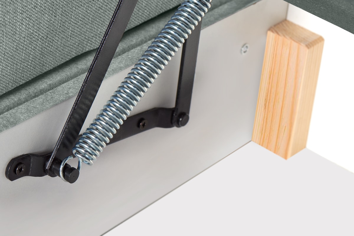 • Gestell: Holzfaserplatte 3,2 mm, innen weiße 16-mm-Spanplatte, außen mit technischem Oberstoff gepolstert