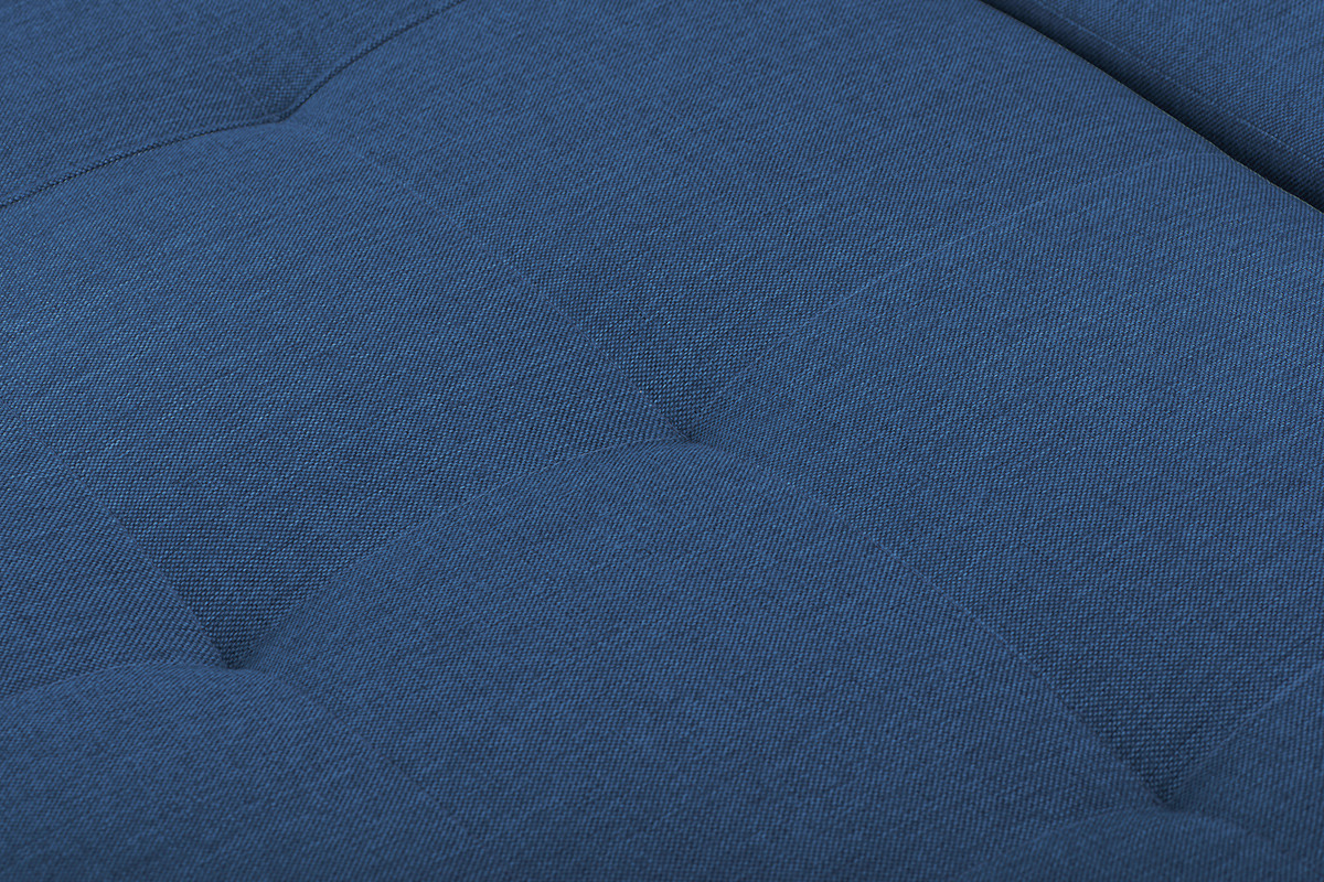 Entworfen mit Funktionalität im Hinterkopf, fungiert das moderne, marineblaue Schlafsofa REVO tagsüber als bequemes Sofa und verwandelt sich nachts in ein breites und praktisches Bett. Dank des Ausklappmechanismus lässt sich das DL-Sofa schnell und einfach ausklappen - es genügt, die Rückenlehne nach vorne zu neigen. Ein großer Behälter bietet Platz für Bettwäsche und mehr.