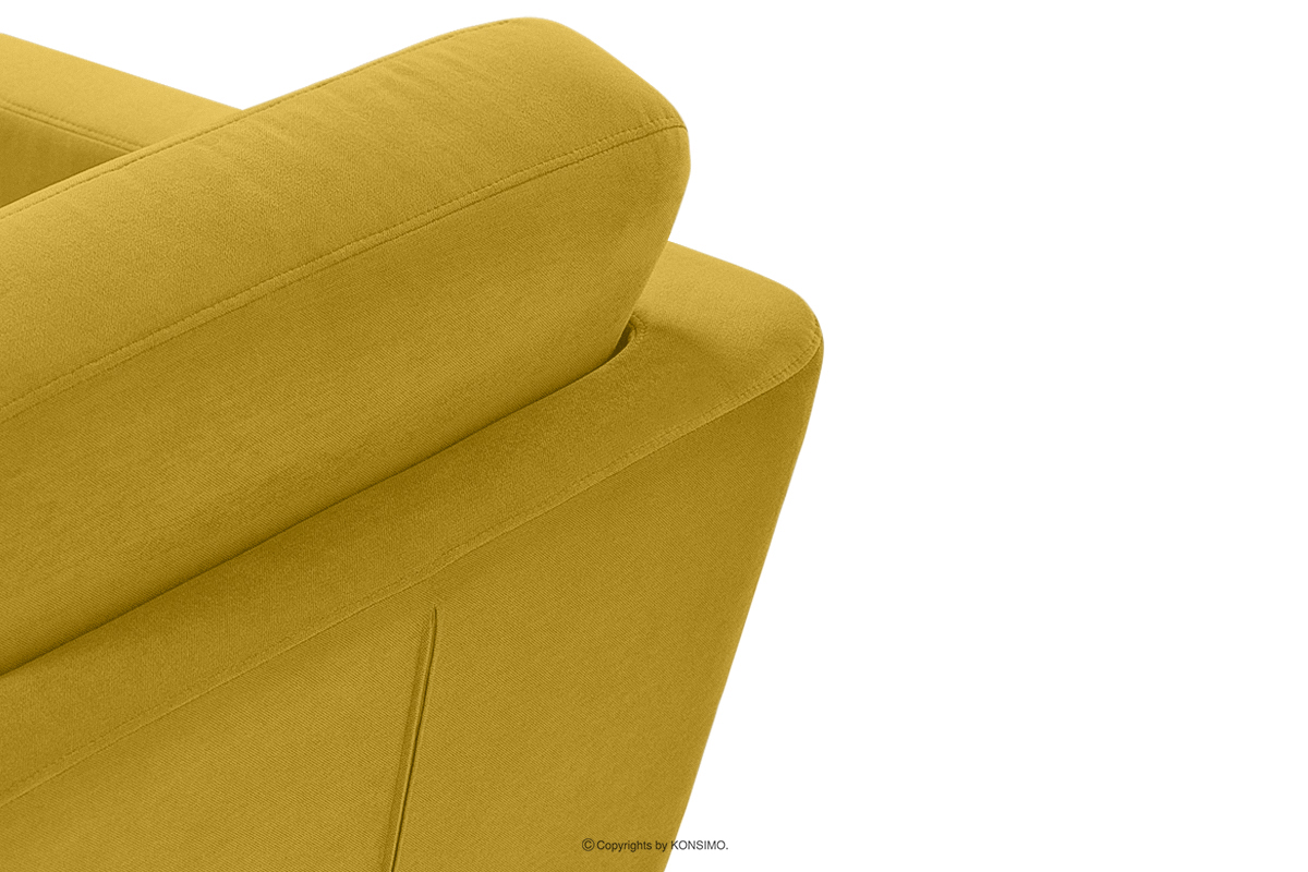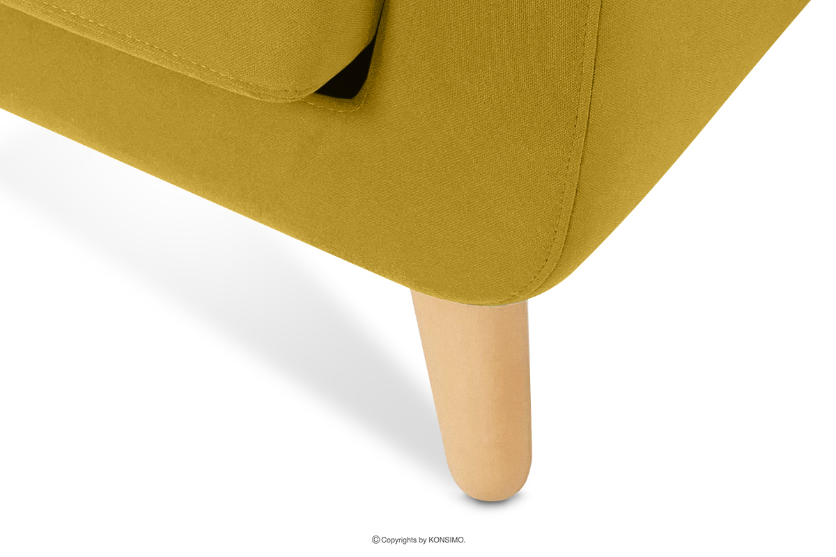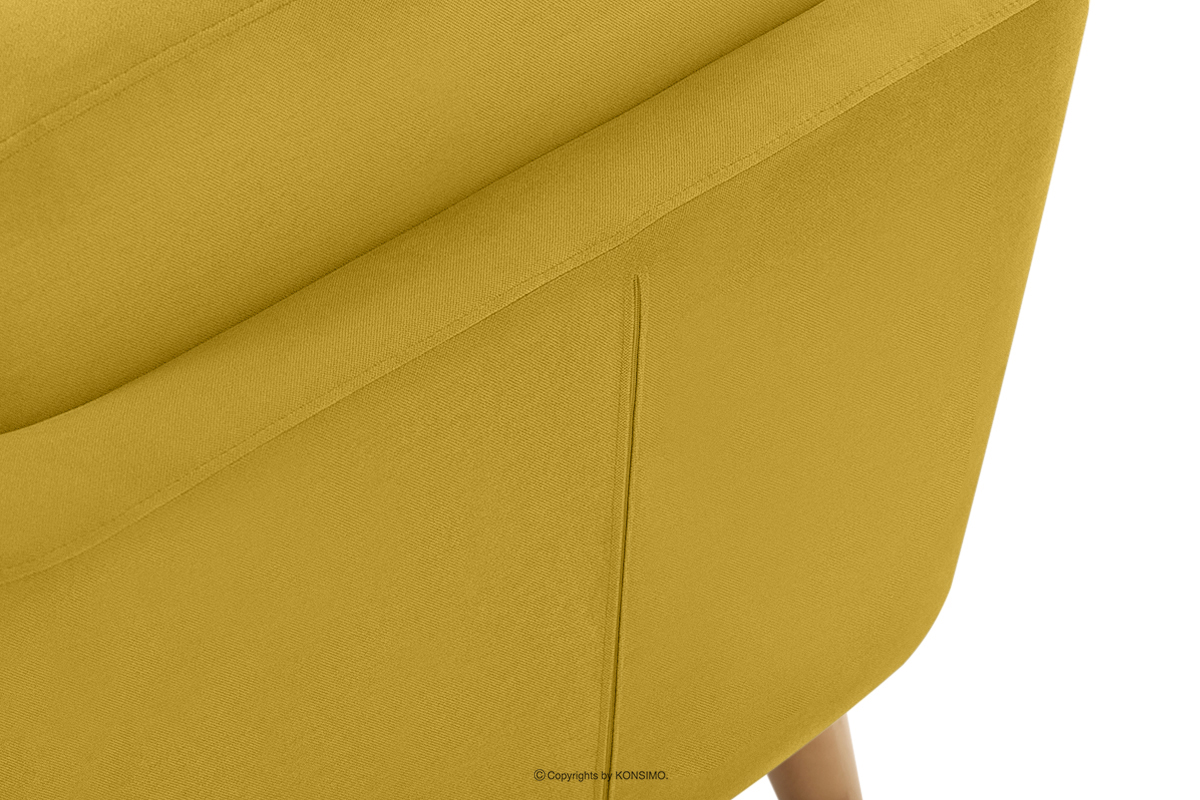 Der gelbe skandinavische Sessel aus der TAGIO-Kollektion ist ein Produkt aus hochwertigen Materialien. Das Design ist von der Region Nordeuropa inspiriert. Ein weiteres Merkmal dieses Möbels ist der Kissenbezug mit ästhetisch verstecktem Reißverschlusstunnel. Der TAGIO-Sessel ist mit einem samtigen Stoff bezogen, der sich unglaublich angenehm anfühlt und gleichzeitig abrieb- und pillingfest ist.