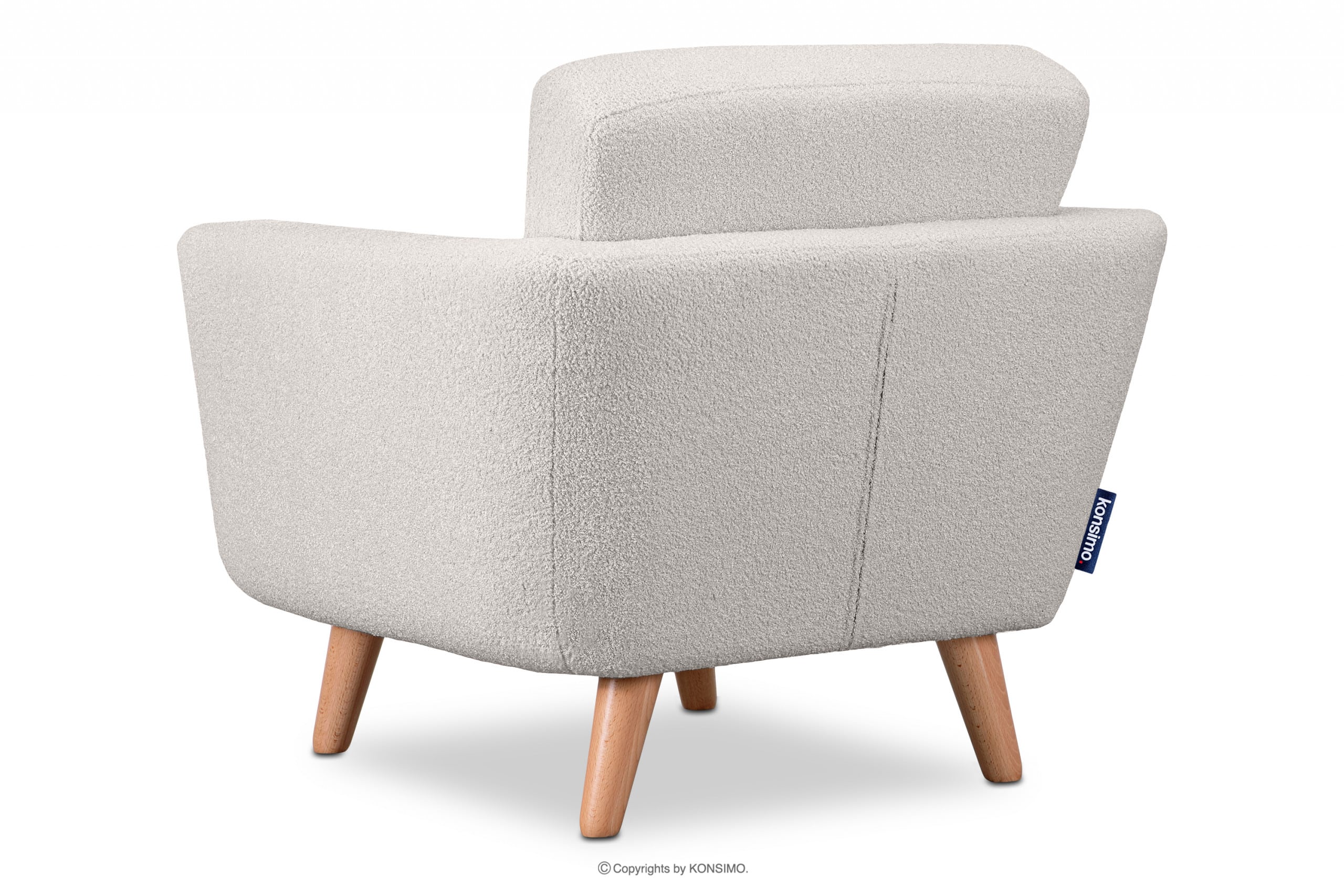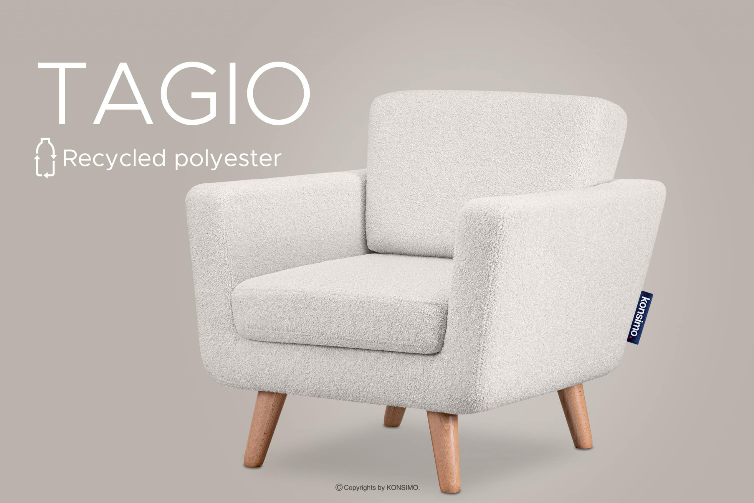 Der weiße skandinavische Sessel aus der TAGIO-Kollektion ist ein Produkt aus hochwertigen Materialien. Das Design ist von der Region Nordeuropa inspiriert. Ein zusätzliches Merkmal dieses Möbels ist der Bezug der Kissen, der eine ästhetisch versteckte Reißverschlussöffnung enthält. Der TAGIO-Sessel ist mit einem Schaffellstoff bezogen, der sich unglaublich angenehm anfühlt und gleichzeitig strapazierfähig und abriebfest ist.