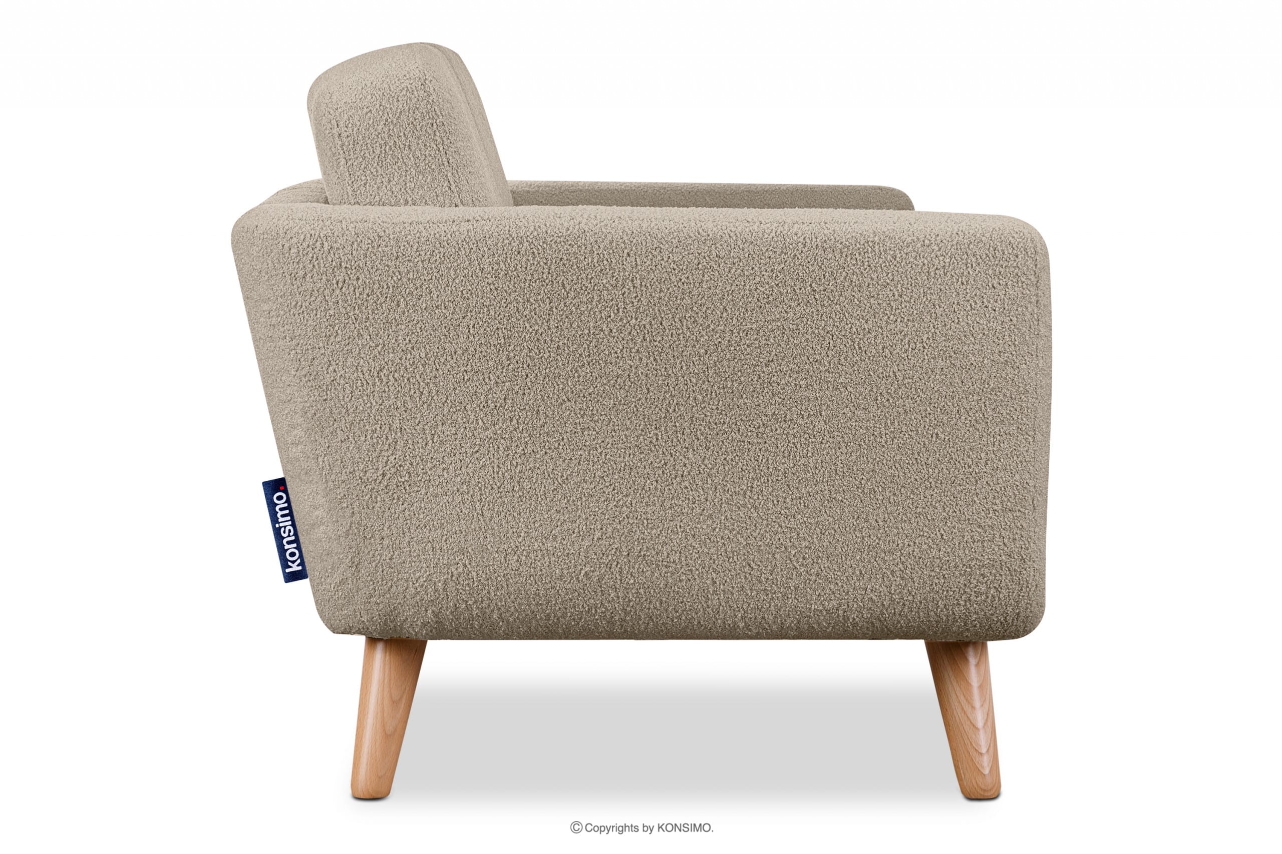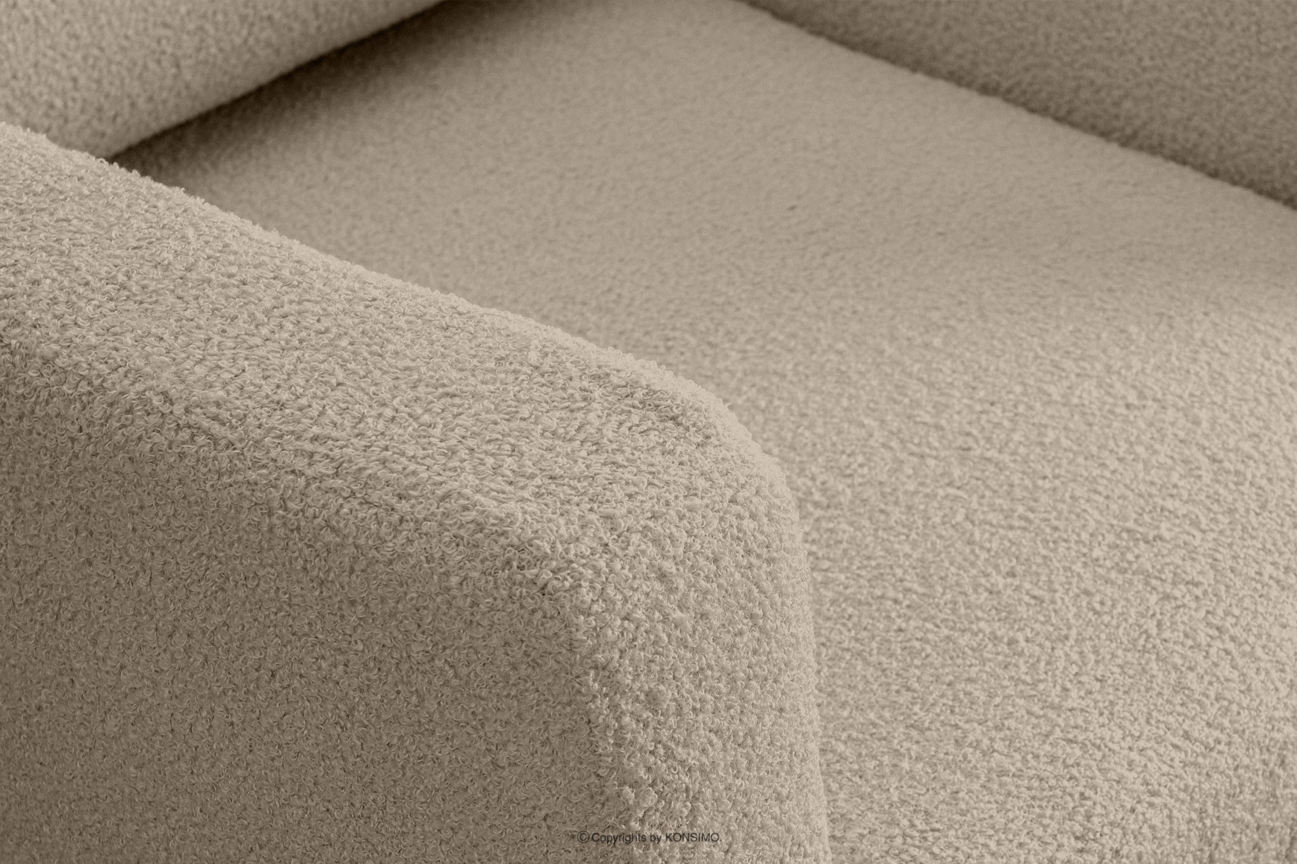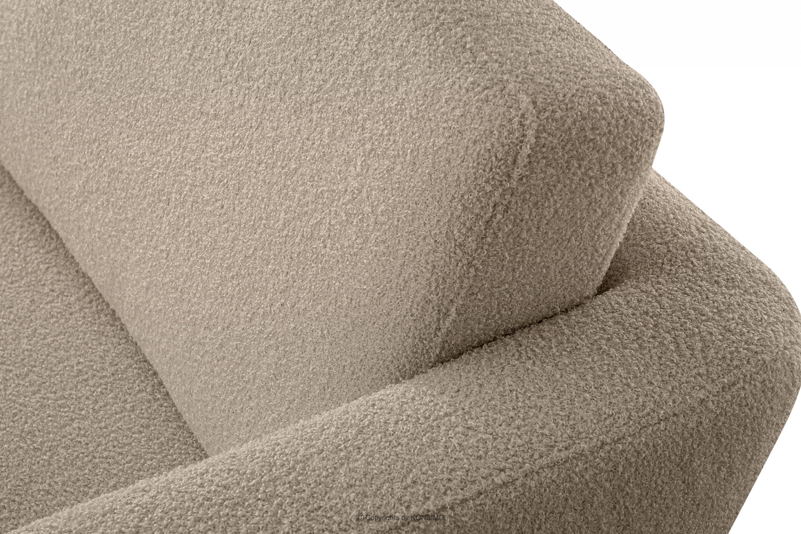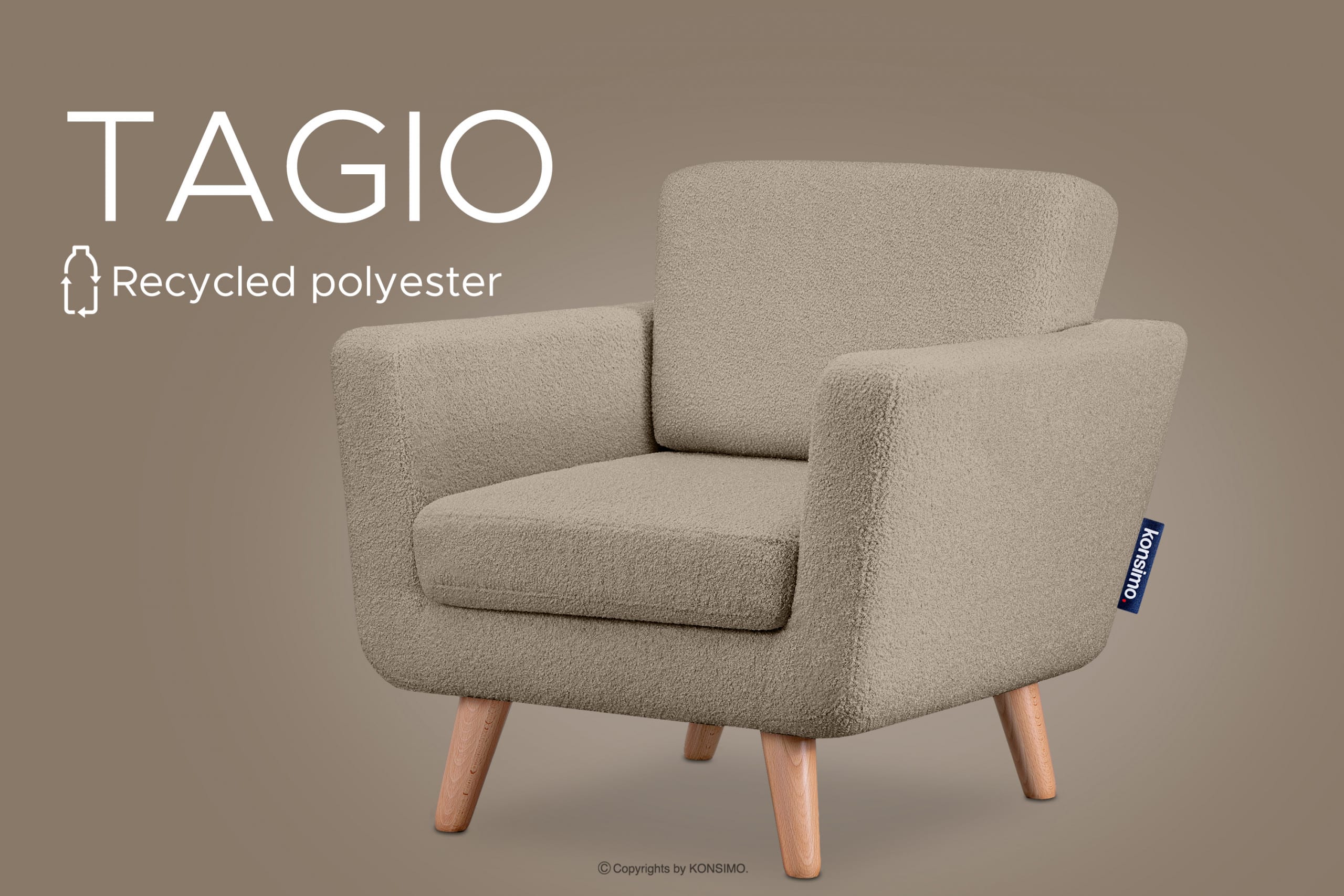 Der braune skandinavische Sessel aus der TAGIO-Kollektion ist ein Produkt, das aus hochwertigen Materialien hergestellt wird. Das Design ist von der Region Nordeuropa inspiriert. Ein zusätzliches Merkmal dieses Möbels ist der Bezug mit verstecktem Reißverschlusstunnel auf den Kissen. Der TAGIO-Sessel ist mit einem Boucléstoff bezogen, der sich unglaublich angenehm anfühlt und gleichzeitig abrieb- und pillingbeständig ist.
