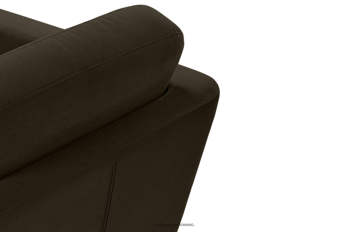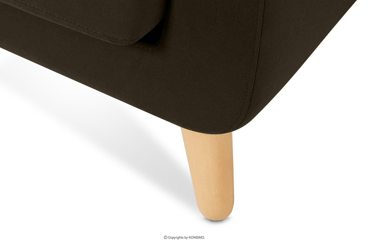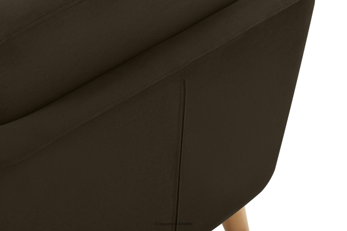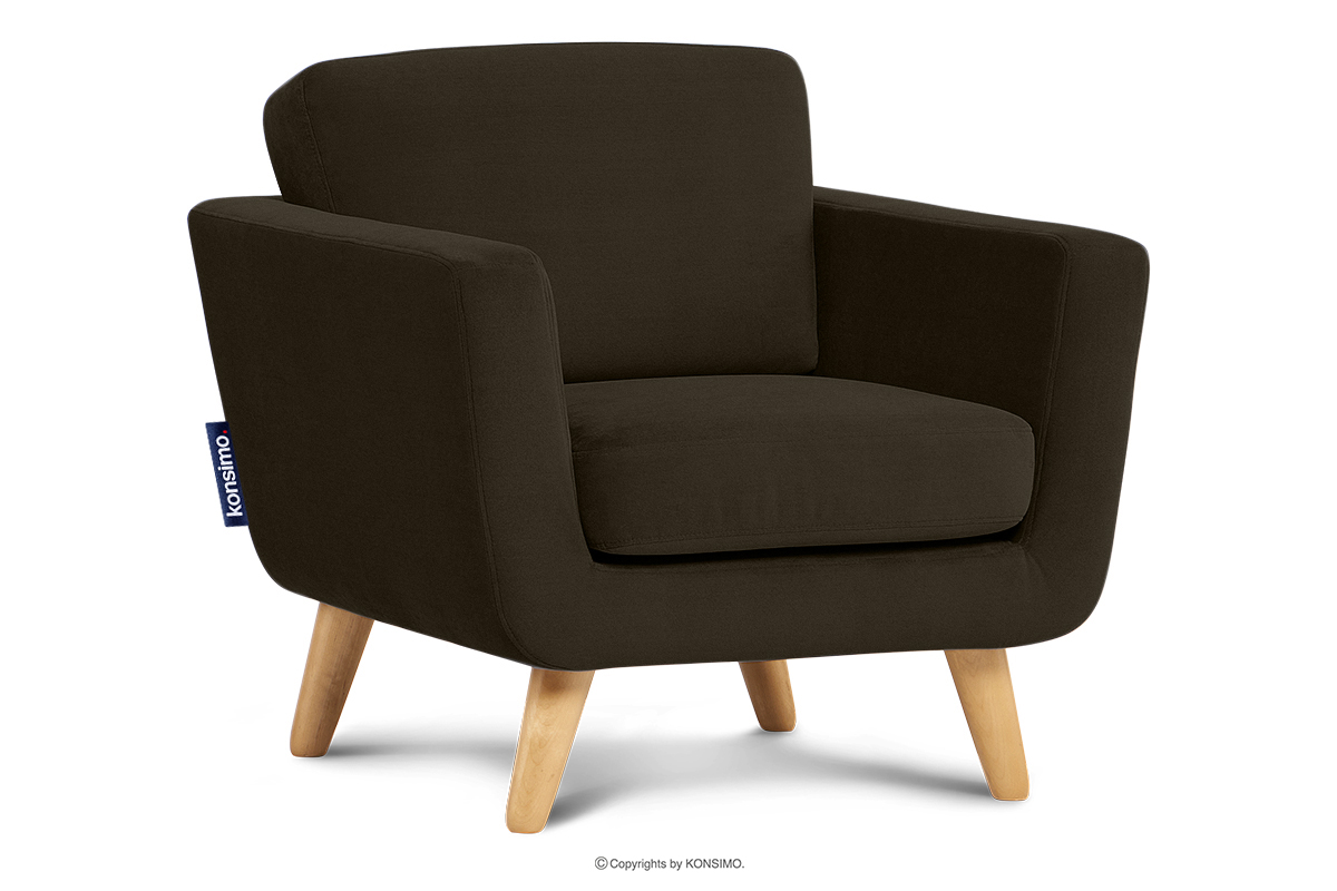 Der braune skandinavische Sessel aus der TAGIO-Kollektion ist ein Produkt aus hochwertigen Materialien. Das Design ist von der Region Nordeuropa inspiriert. Ein zusätzliches Merkmal dieses Möbels ist der Bezug der Kissen, der ästhetisch versteckte Reißverschlusskanäle enthält. Der TAGIO-Sessel ist mit einem samtigen Stoff bezogen, der sich unglaublich weich anfühlt und gleichzeitig abrieb- und pillingbeständig ist.