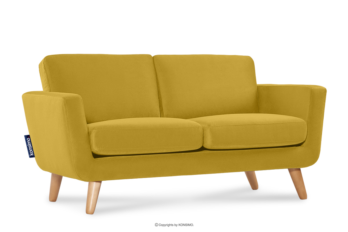 Das gelbe skandinavische Zweisitzer-Sofa TAGIO ist ein Produkt aus hochwertigen Materialien. Das Design ist von der Region Nordeuropa inspiriert. Ein zusätzliches Merkmal dieses Möbels ist der Bezug der Kissen, der ästhetisch versteckte Reißverschlusstaschen enthält. Das TAGIO-Sofa ist mit samtigem Stoff bezogen, der sich unglaublich angenehm anfühlt und gleichzeitig abrieb- und pillingbeständig ist.