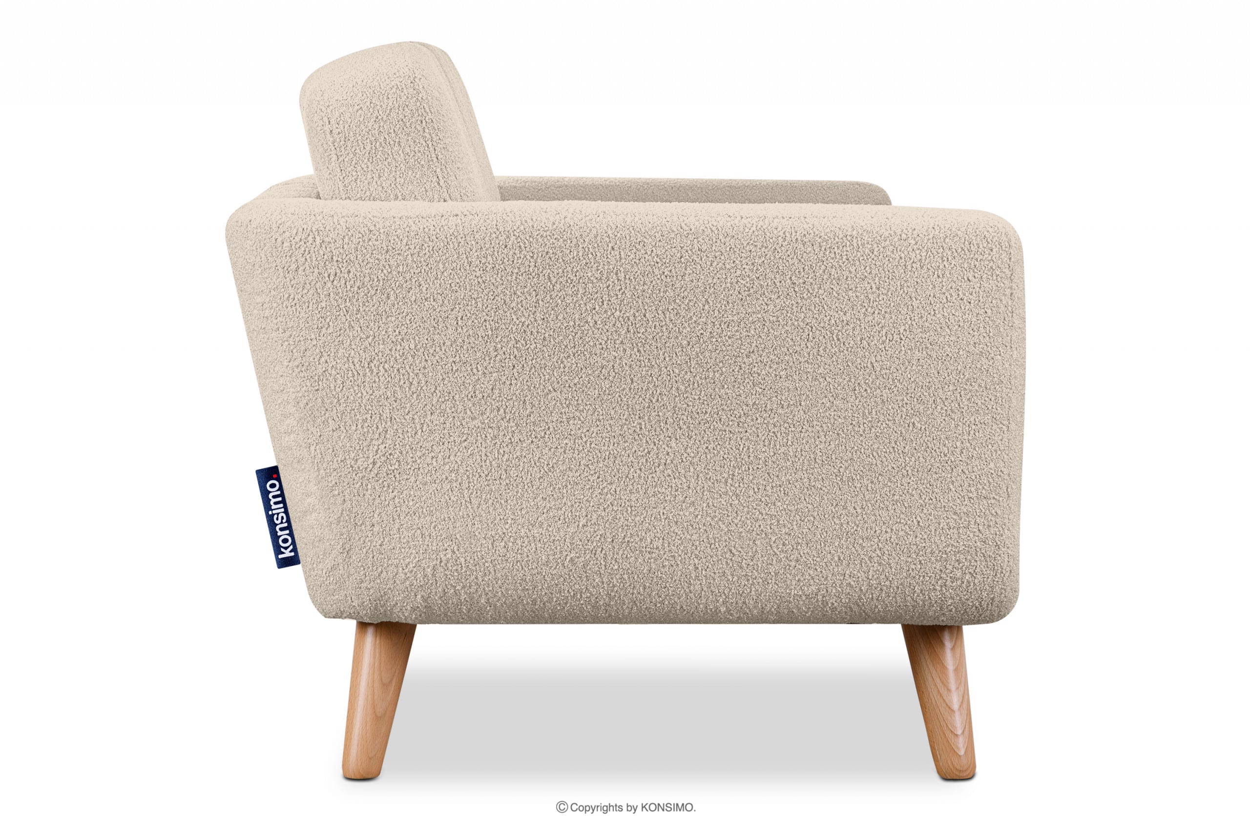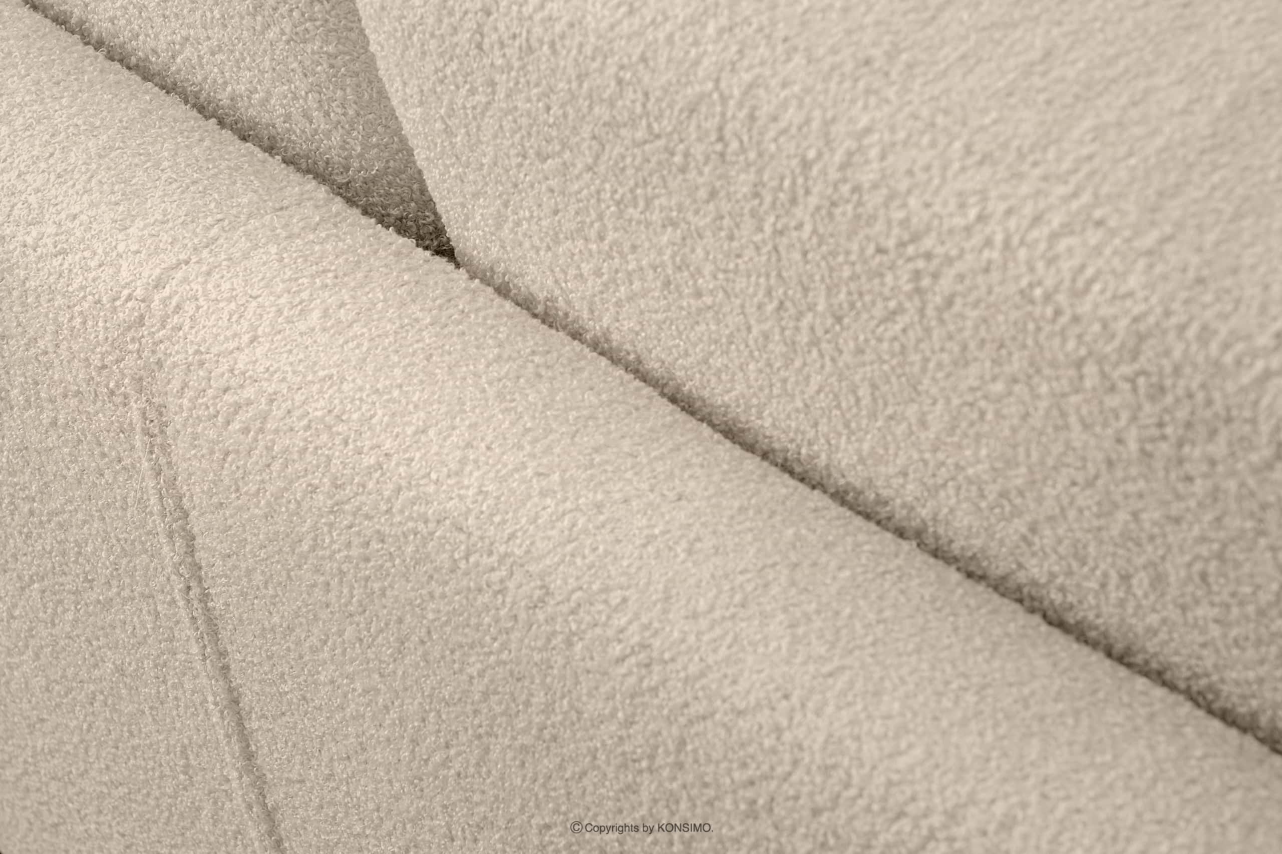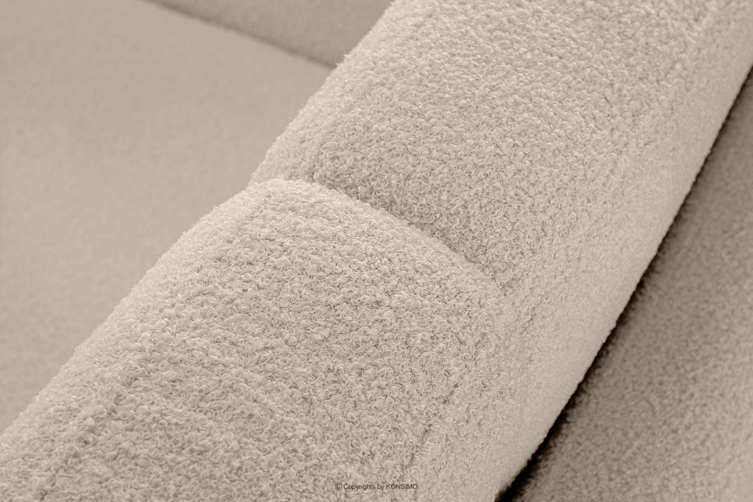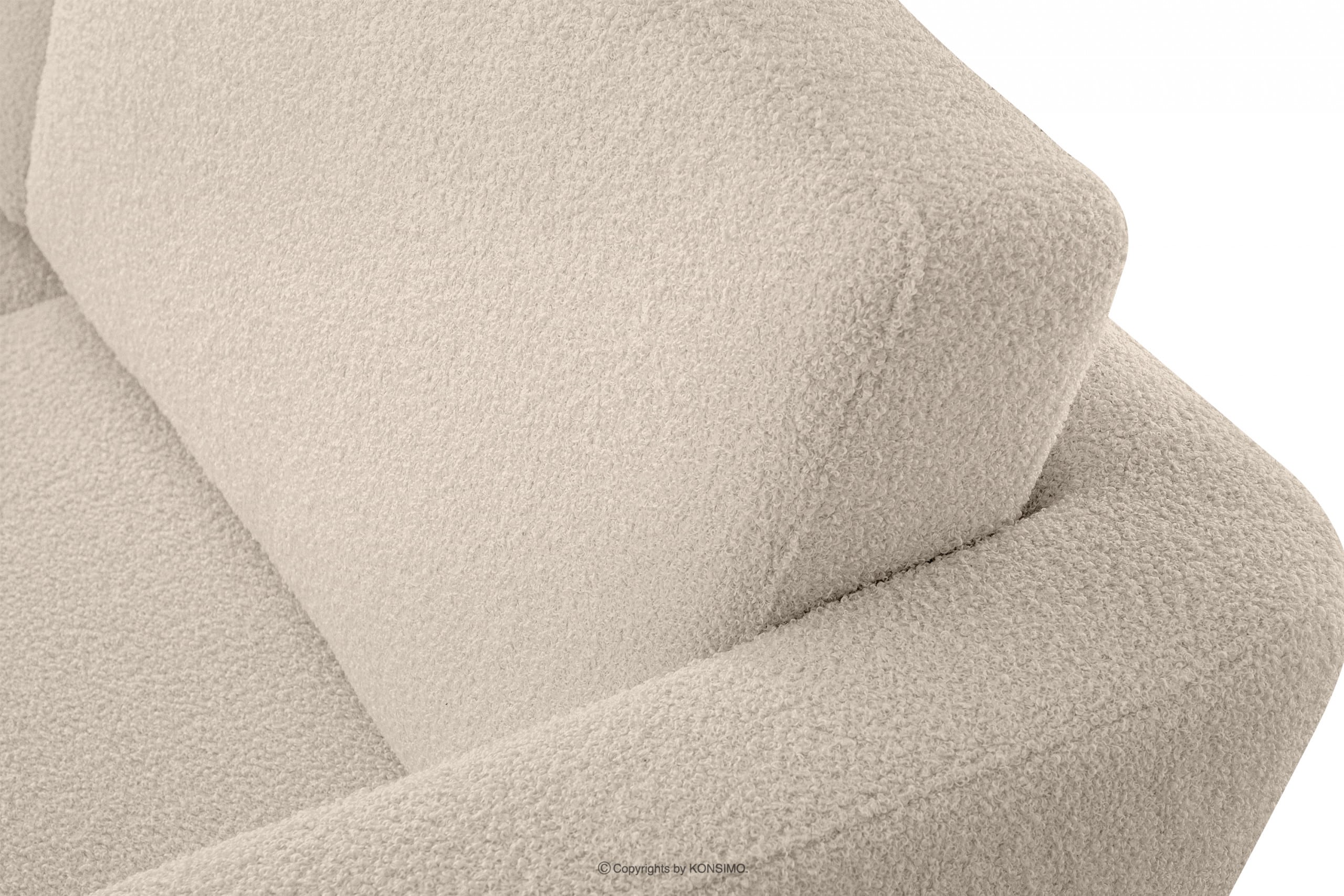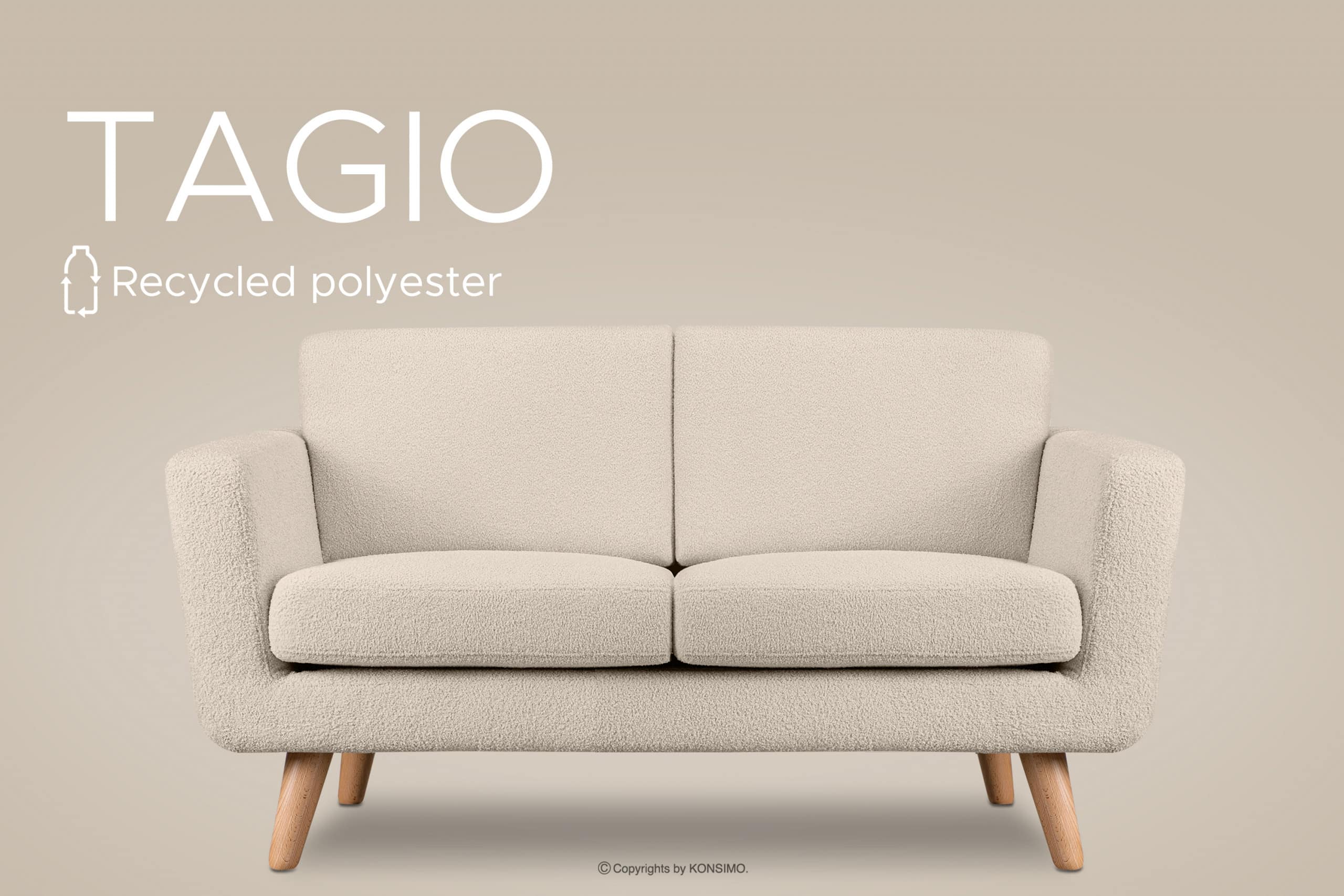 Skandinavisches 2-Sitzer-Sofa aus cremefarbenem Boucléstoff TAGIO ist ein Produkt aus hochwertigen Materialien. Das Design ist von der Region Nordeuropa inspiriert. Ein zusätzliches Merkmal dieses Möbels ist der Kissenbezug, der eine ästhetisch versteckte Reißverschlusstasche enthält. Das TAGIO-Sofa ist mit Bouclé-Stoff bezogen, der sich unglaublich weich anfühlt und gleichzeitig abrieb- und pillingbeständig ist.