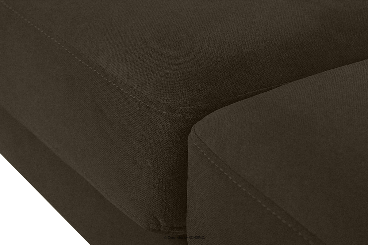 Das braune Sofa TAGIO ist ein Möbelstück für Personen, die nach Produkten von höchster Qualität suchen. Es ist aus Samt gefertigt, der resistent gegen Abrieb und Licht ist und lange Zeit sein ursprüngliches Aussehen behält. Die Gesamtgröße des Produkts beträgt 153x80x84 cm. Im Sitz befinden sich Wellenfedern, die eine hohe Beständigkeit gegen Verformungen aufweisen. Produkte, bei denen solche Federn verwendet werden, verformen sich nicht. Darüber hinaus finden wir im Sitz hochelastischen HR 30 Schaumstoff mit glatter Textur. Er ist flexibel, widerstandsfähig gegen Dehnung, Überlastung und Kompression und hat einen hohen Atemaktivitätskoeffizienten für Oberflächen und Innenteile. Dies ist ein Schaumstoff, der bei der Herstellung von exklusiven Möbeln verwendet wird. Die Entspannungsfüße bestehen aus massivem Holz, das mit farblosem Lack überzogen ist und eine Höhe von 18 cm misst.