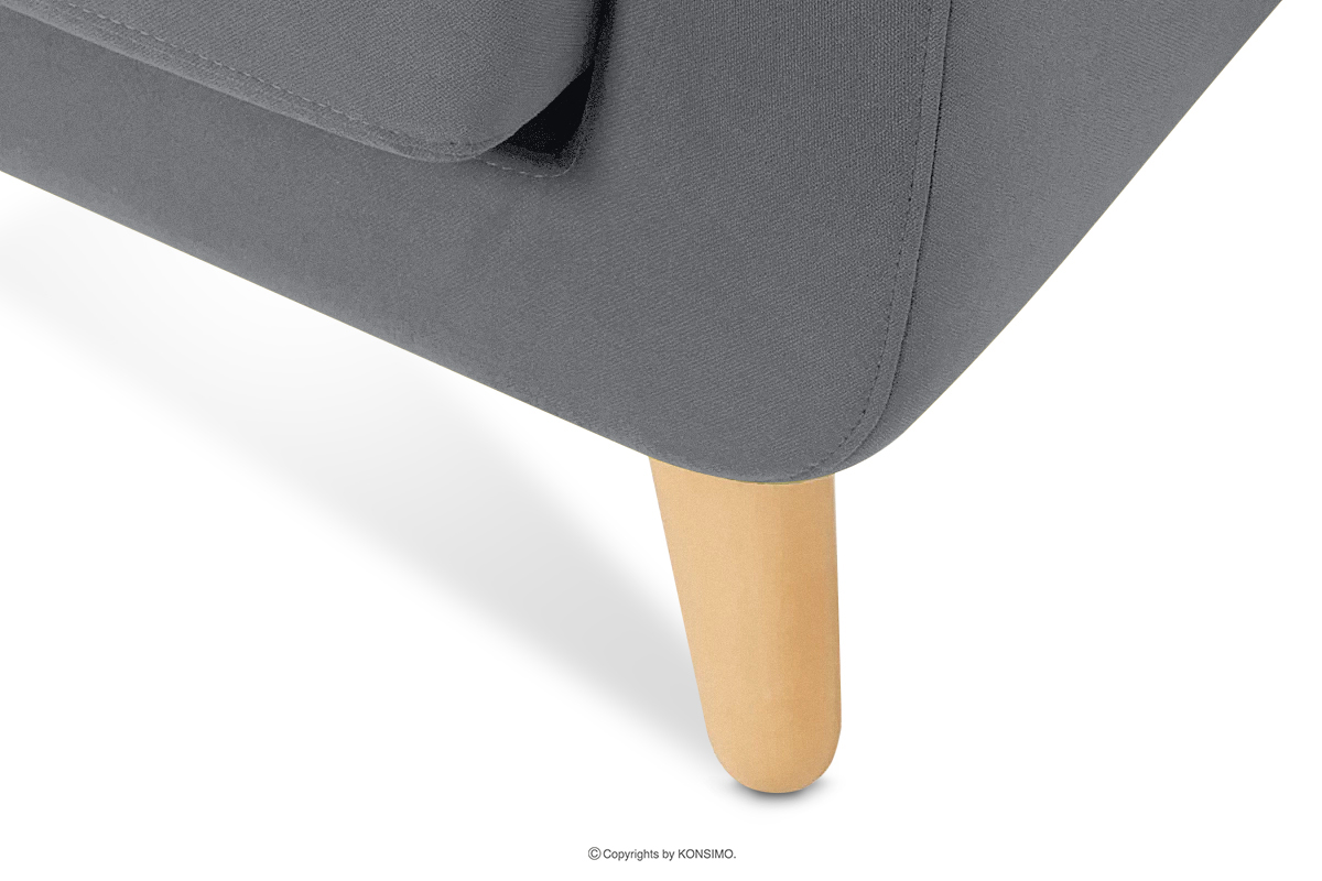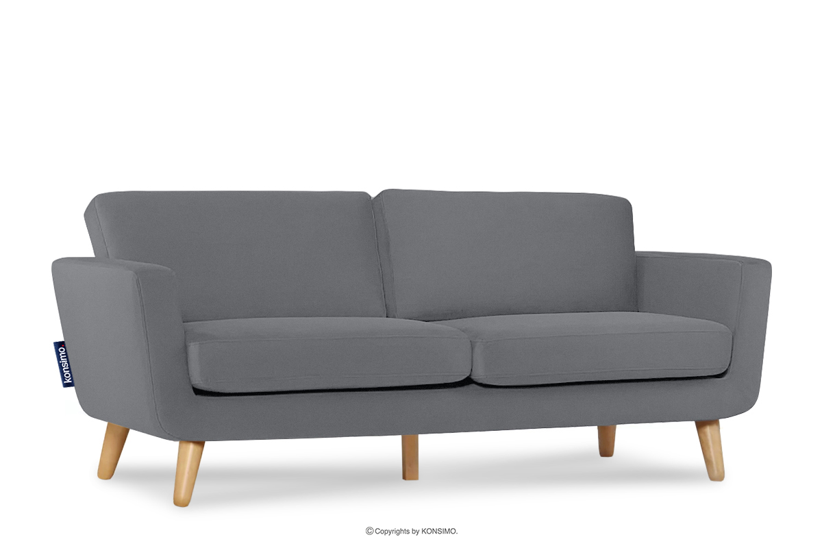 Das graue skandinavische Drei-Sitzer-Sofa TAGIO ist ein Produkt, das aus hochwertigen Materialien hergestellt ist. Das Design ist von der Region Nordeuropa inspiriert. Ein zusätzliches Merkmal dieses Möbels ist der Kissenbezug, der ästhetisch versteckte Reißverschlusstunnel enthält. Die TAGIO-Liege ist mit einem samtigen Stoff bezogen, der unglaublich weich im Griff ist und gleichzeitig abrieb- und pillingresistent ist.