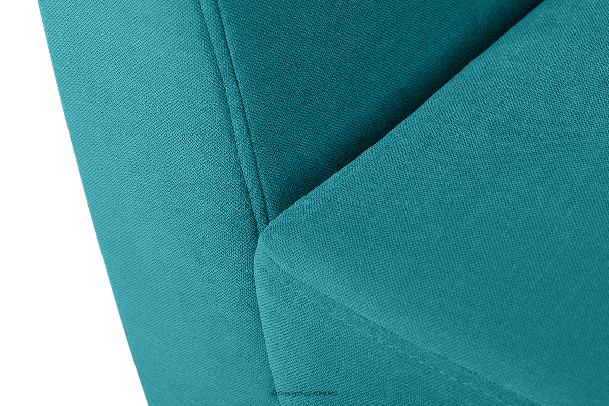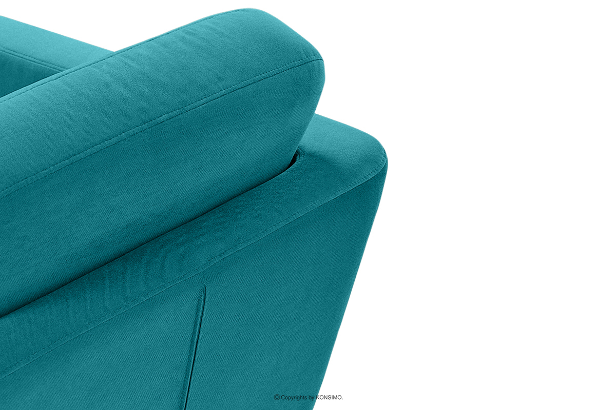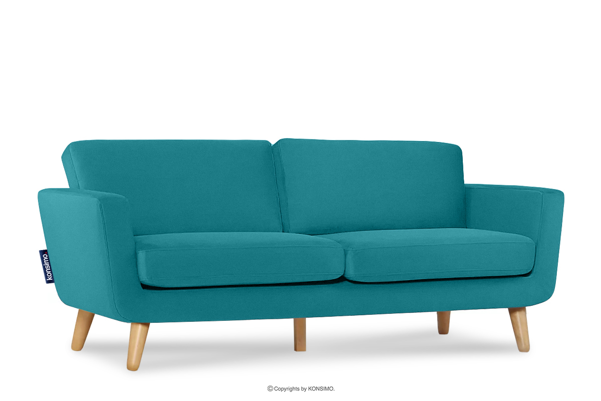 Das türkisfarbene skandinavische Dreisitzer-Sofa TAGIO ist ein Produkt aus hochwertigen Materialien. Das Design ist von der Region Nordeuropa inspiriert. Ein zusätzliches Merkmal dieses Möbelstücks ist der Bezug der Kissen, der ästhetisch versteckte Reißverschluss-Tunnel enthält. Das TAGIO-Sofa ist mit einem samtigen Stoff bezogen, der sich angenehm anfühlt und gleichzeitig abrieb- und pillingbeständig ist.