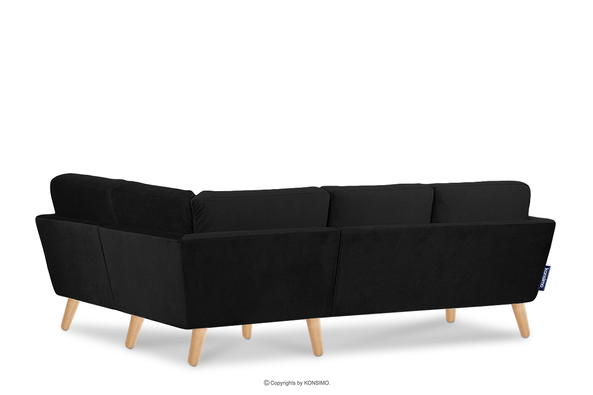 Die schwarze rechte skandinavische Eckcouch aus der TAGIO-Kollektion ist ein Produkt aus hochwertigen Materialien. Das Design ist von der Region Nordeuropa inspiriert. Ein zusätzlicher Merkmal dieses Möbelstücks ist der Bezug der Kissen, der ästhetisch versteckte Reißverschlusstunnel enthält. Die TAGIO-Eckcouch ist mit einem Samtstoff bezogen, der sich unglaublich weich anfühlt und gleichzeitig abrieb- und pillingbeständig ist.