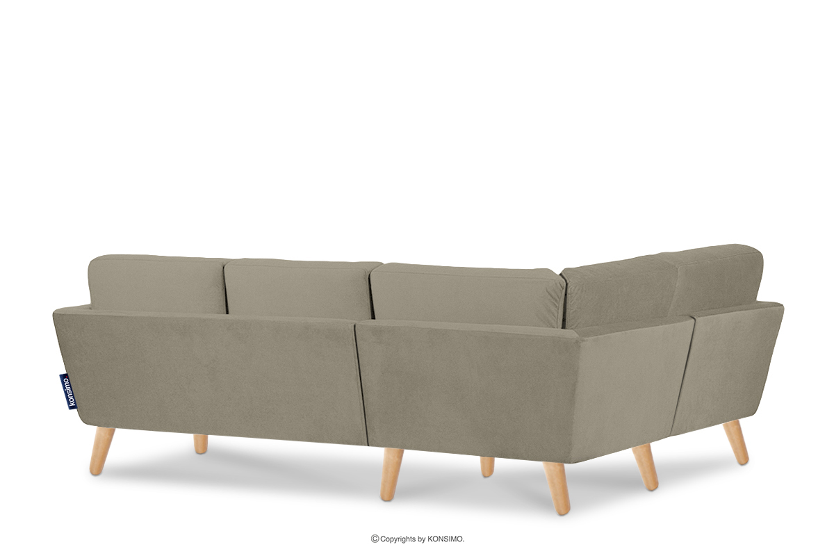 Die beigefarbene linke skandinavische Eckcouch aus der TAGIO-Kollektion ist ein Produkt aus hochwertigen Materialien. Das Design ist von der Region Nordeuropa inspiriert. Ein zusätzliches Merkmal dieses Möbelstücks ist der Kissenbezug, der ästhetisch versteckte Reißverschluss-Tunnel enthält. Die TAGIO-Eckcouch ist mit einem Samtstoff bezogen, der sich unglaublich angenehm anfühlt und gleichzeitig abrieb- und pillingfest ist.