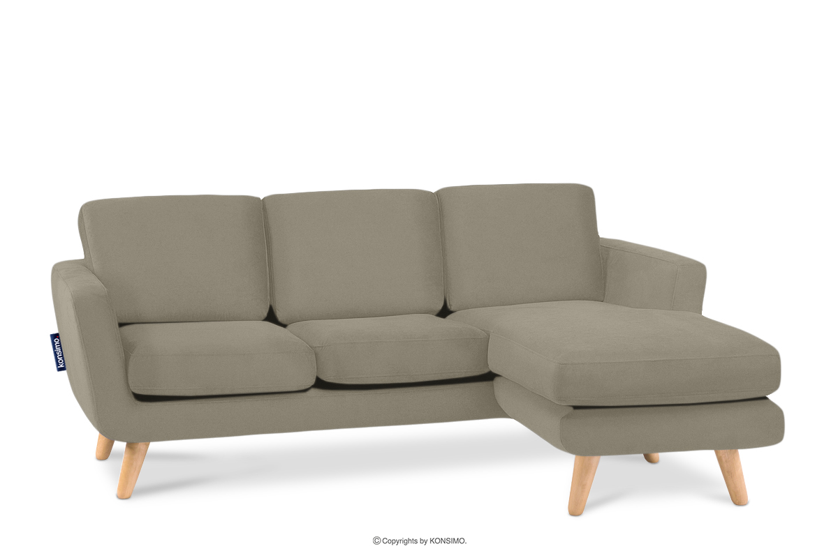 TAGIO Beigefarbenes skandinavisches Ecksofa mit Pouffe / Ottomane rechts