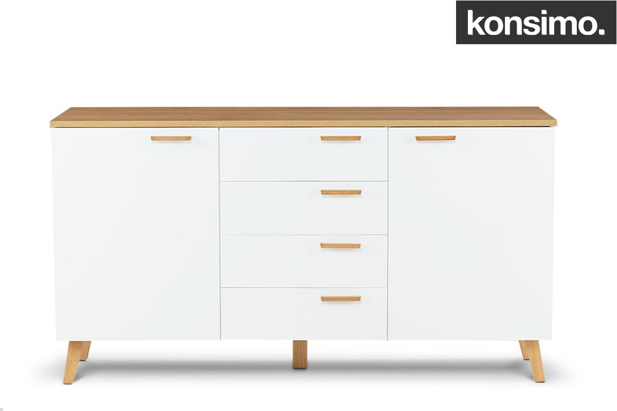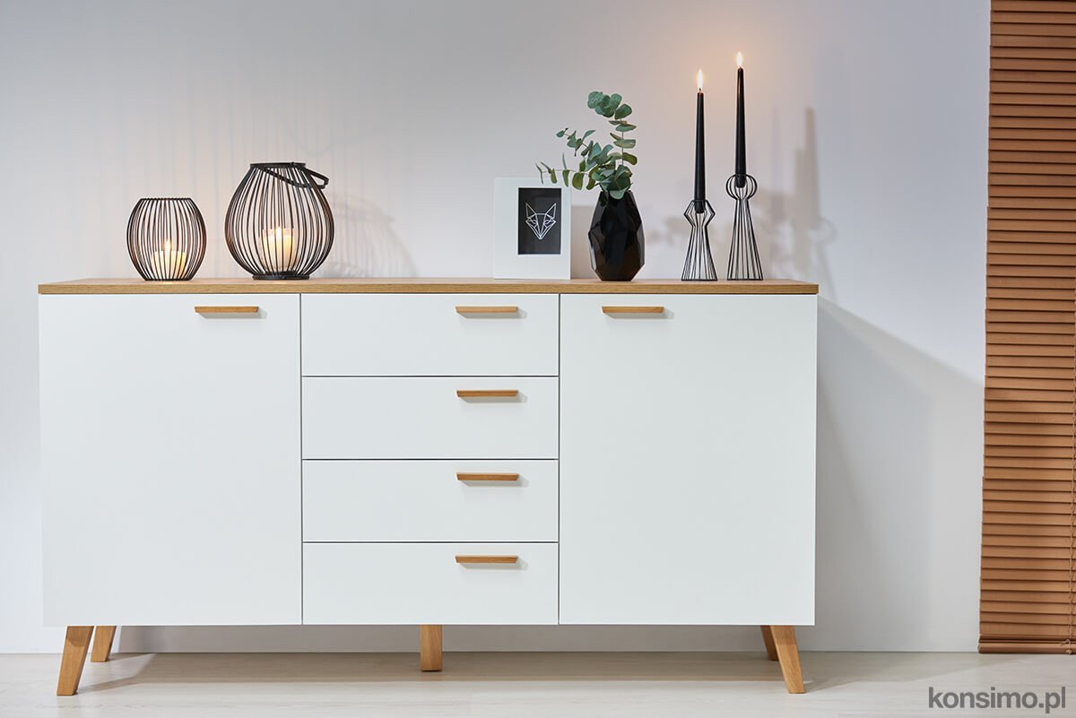 FRISK Mehr aus der Kollektion Weiße skandinavische Kommode mit Schubladen- Farbe weiß / eiche natur