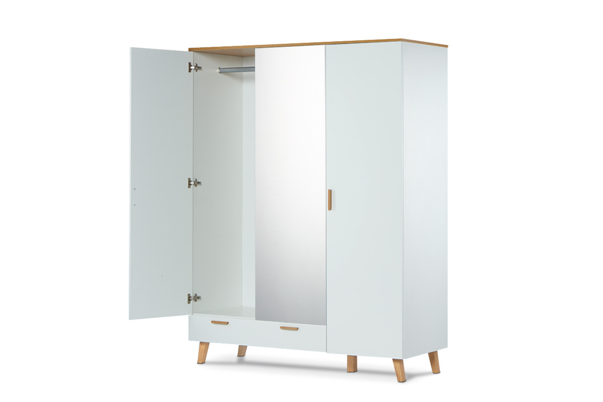 FRISK Mehr aus der Kollektion Weißer Kleiderschrank mit Spiegel im skandinavischen Stil- Farbe weiß / eiche natur