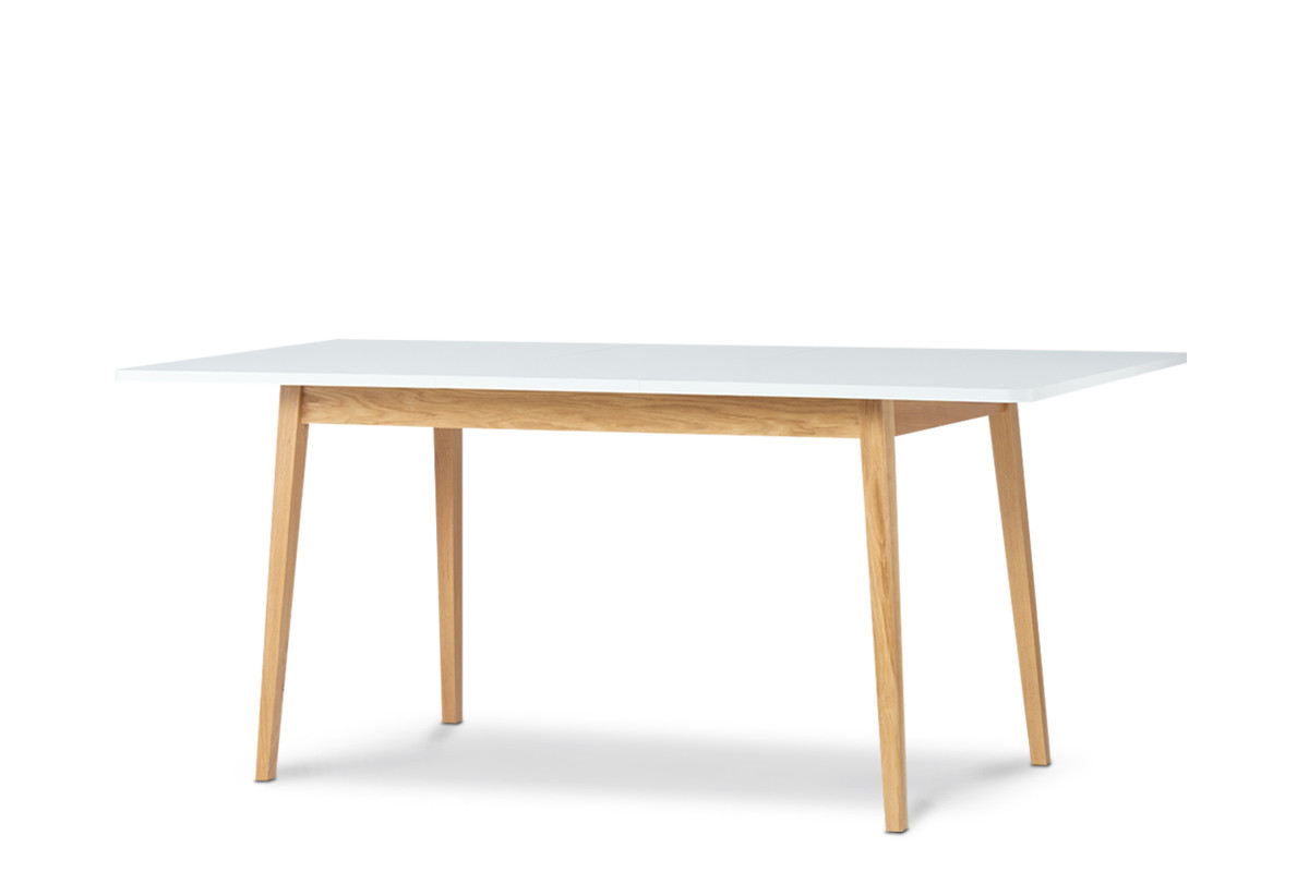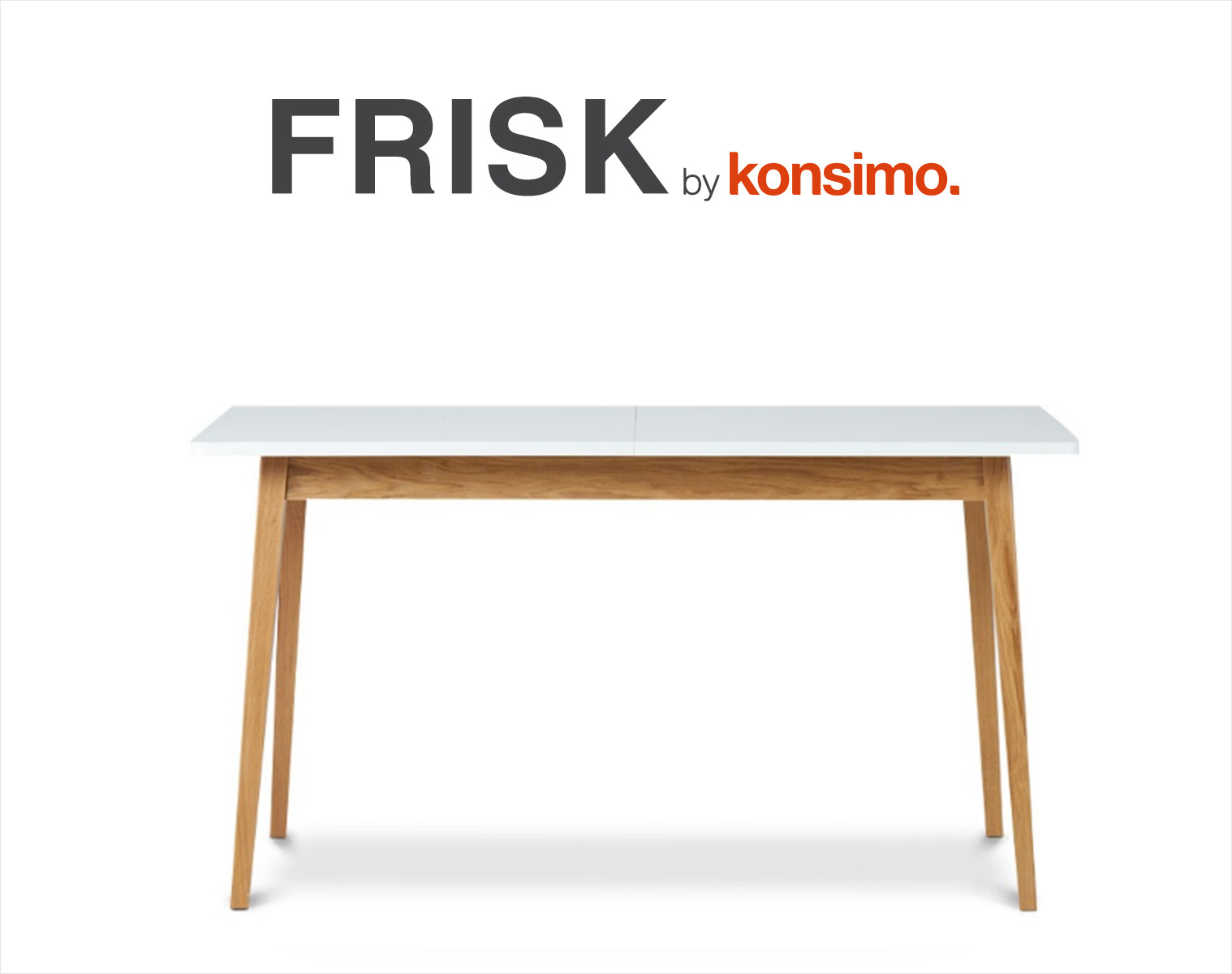 Der skandinavische Tisch FRISK lässt sich sehr schnell ausziehen, es genügt, die Seiten auseinanderzuschieben und eine zusätzliche Platte in der Mitte einzusetzen. Die solide Tischplatte wird von starken, langlebigen Beinen aus Massivholz gestützt. Dank ihnen behält der Tisch auch bei hoher Belastung seine Stabilität bei.
