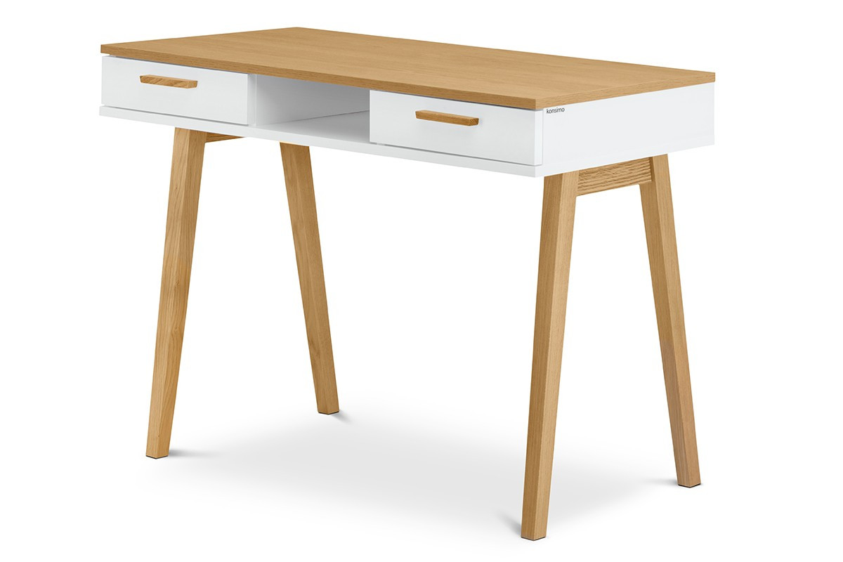 Die Spezialisten von Konsimo haben an alles gedacht, was wir in unseren Wohnungen brauchen. Das Set von fünf weißen Möbeln mit trendigen Accessoires in heller Holzfarbe ermöglicht eine vollständige Ausstattung des Innenraums. Die moderne Einfachheit wird auch bei Jugendlichen gut ankommen. Der geräumige Schrank mit Regal, Schublade und Kleiderstange bietet Platz für alle Kleidungsstücke.