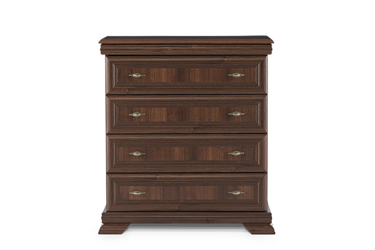 Praktisch, bequem - die Kommode aus der IMPERIO-Kollektion ist eine ausgezeichnete Wahl für Liebhaber klassischer Möbel. Eleganz und einzigartiger Charme gehen hier Hand in Hand mit hoher Qualität. Hergestellt aus robustem, massivem Holz, hält sie auch schwerem Gewicht stand. Vier breite, tiefe Schubladen bieten Platz für Kleidung, Bettwäsche, Tischdecken und viele andere Alltagsgegenstände.