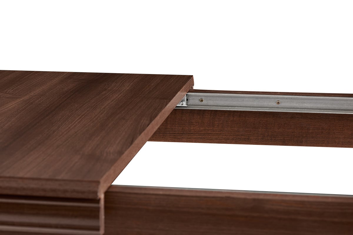 Passt perfekt in große und kleine Räume. Im Alltag kompakt und wenn Gäste kommen - breit und bequem. Der Tisch aus der IMPERIO Kollektion ist das Ergebnis der Arbeit der besten Konsimo-Designer. Hier wurde auf Ergonomie und solide Konstruktion geachtet. In seiner klassischen Form ist dieser Tisch aus sehr strapazierfähigen Materialien gefertigt - massives mit Folie laminiertes Holzdekor.