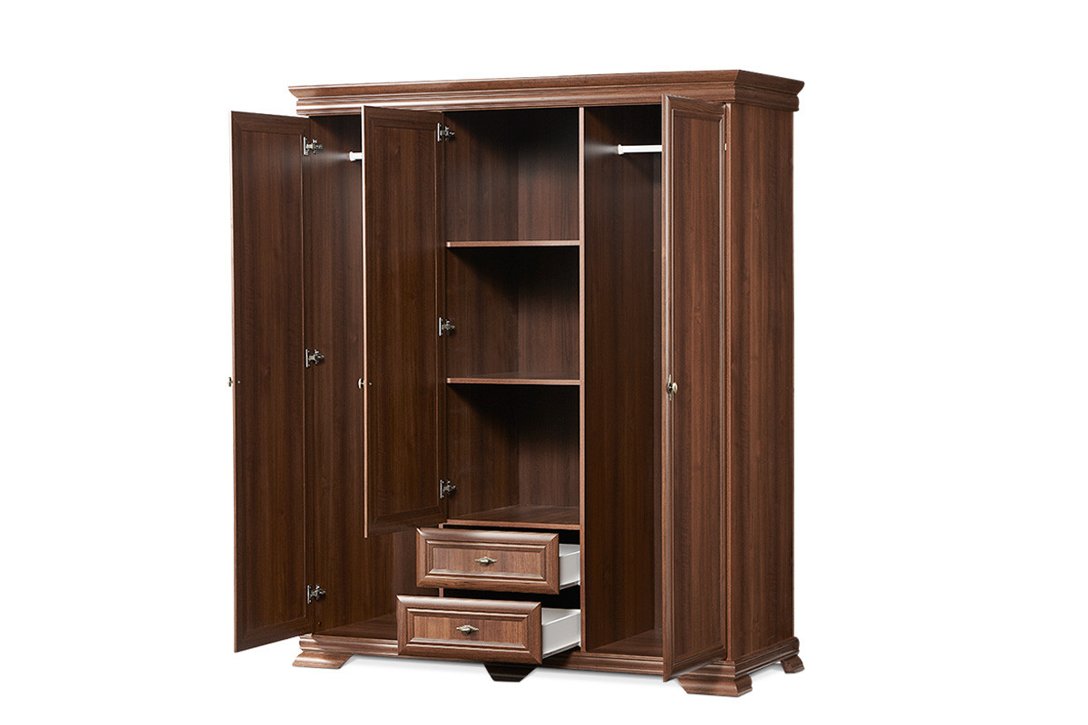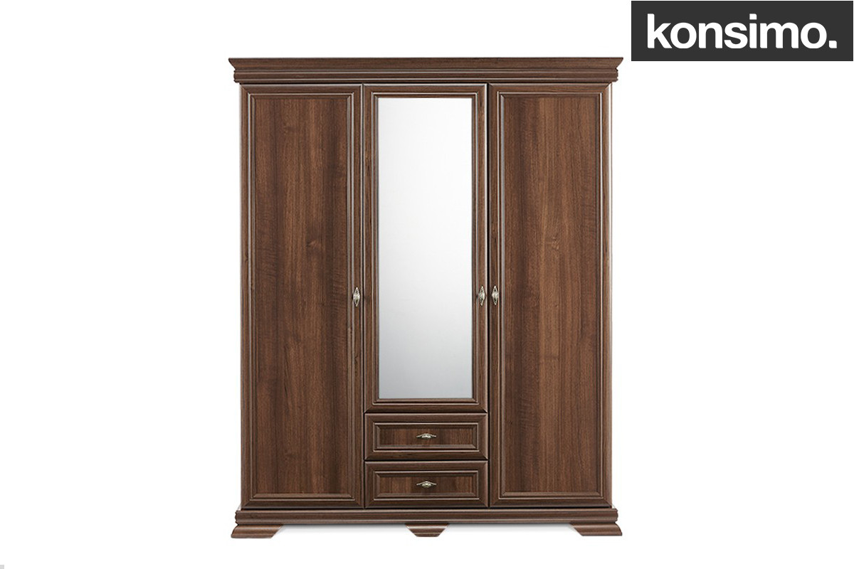In jedem Haus muss es einen Ort geben, an dem Kleidung problemlos untergebracht werden kann - ohne Angst vor Knittern. Der Kleiderschrank aus der IMPERIO-Kollektion von Konsimo ist das Werk der besten Designer - geschaffen mit den Bedürfnissen des Benutzers im Hinterkopf. Zwei hohe, geräumige Schränke mit Kleiderstangen, praktischen Regalen und bequem gleitenden Schubladen bieten Platz für jede Art von Kleidung.