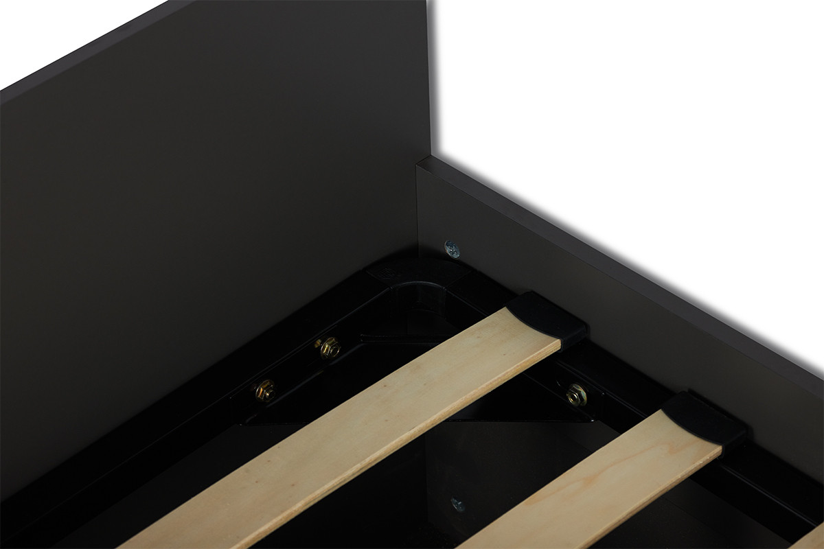 Der hochwertige holzähnliche Laminat ist in zwei Farbvarianten erhältlich und das schlichte Design sowie der geometrische Griff betonen den modischen und modernen Stil des Bettes. Geräumige Regale und eine Schublade bieten ausreichend Platz für Bettwäsche, Kissen und andere Kinderaccessoires und helfen dabei, Ordnung im Zimmer unseres Kleinen zu halten.