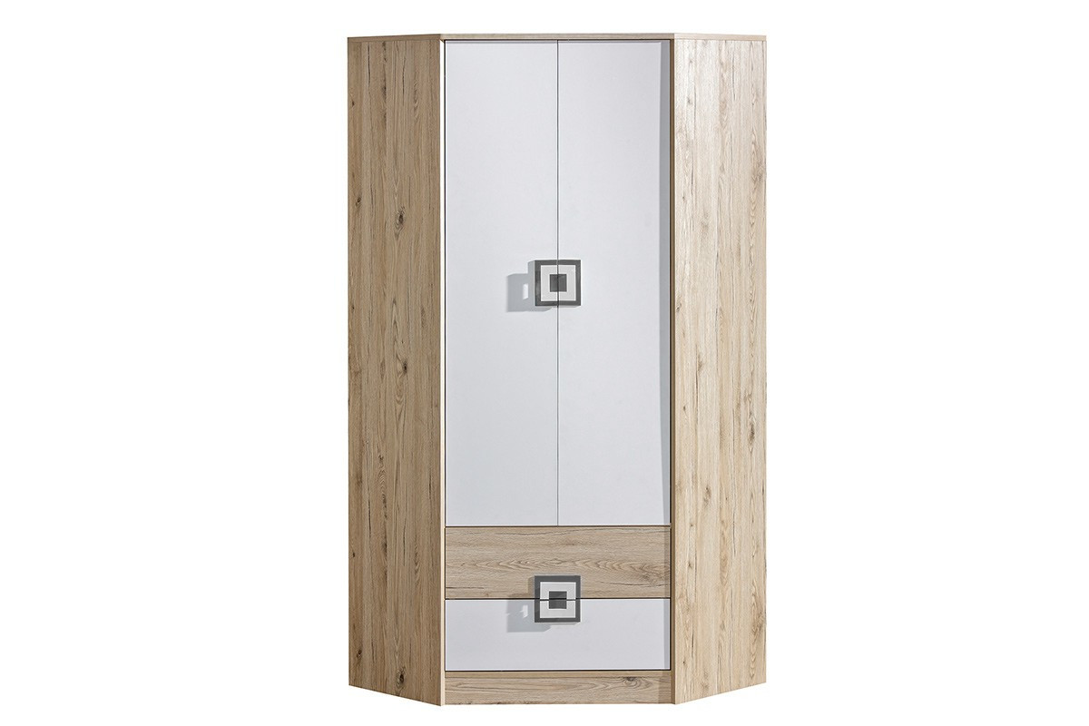 CAMBI Farbiges Kinderzimmermöbel-Set 4 Elemente Eckschrank weiß / Eiche hell / grau