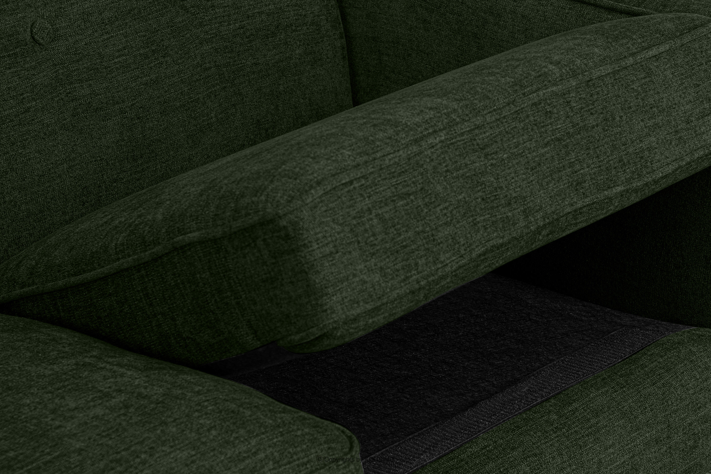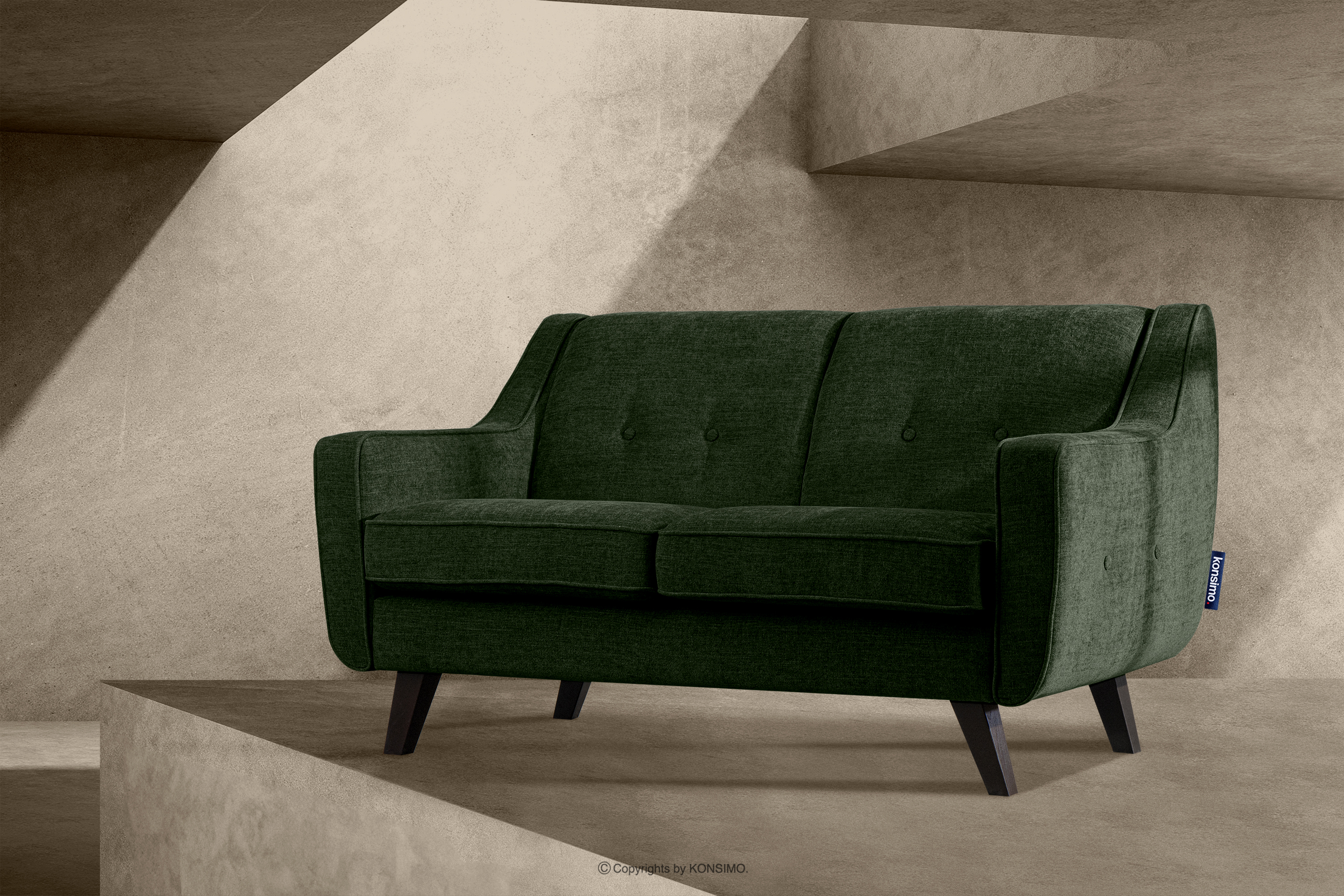 Das zweisitzige Sofa für das Wohnzimmer in grünem Webstoff aus der Kollektion TERSO wurde für den Komfort in luxuriösen Innenräumen entworfen. Der hochwertige lederähnliche Stoff sieht nicht nur gut aus, sondern ist auch äußerst abriebfest und pflegeleicht. Der bequeme Sitz, die entsprechend geformte Rückenlehne und die Seiten in optimaler Höhe sorgen für einen hohen Erholungskomfort der Haushaltsmitglieder und Gäste.