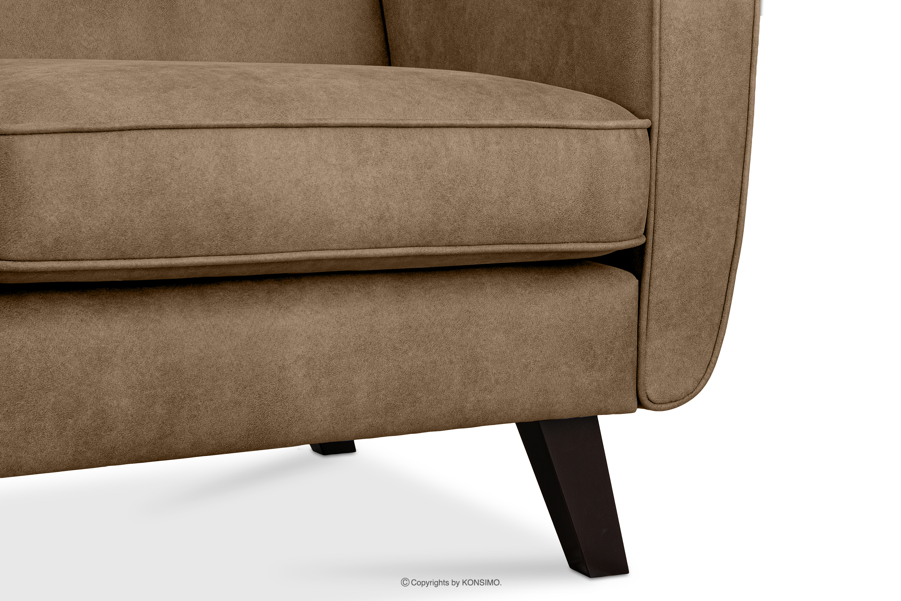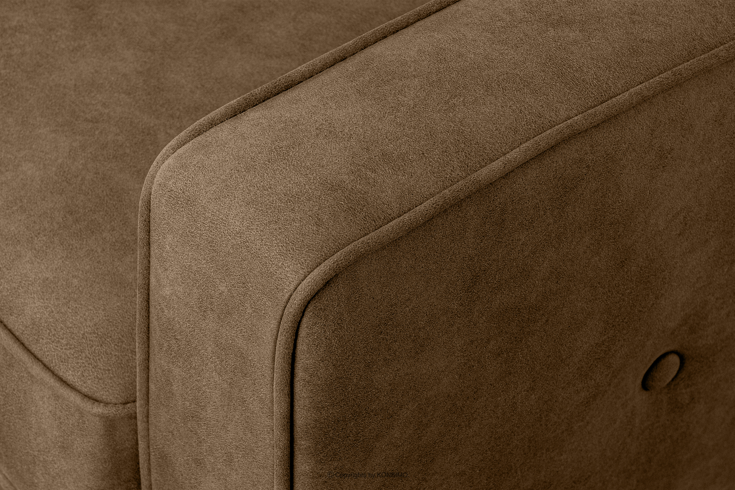 Das Sofa 2 loft aus lederähnlichem Stoff in dunklem Hellbraun aus der Kollektion TERSO wurde für den Komfort in luxuriösen Innenräumen entworfen. Der hochwertige lederähnliche Stoff sieht nicht nur gut aus, sondern ist auch äußerst abriebfest und leicht zu reinigen. Der bequeme Sitz, die entsprechend geformte Rückenlehne und die Seiten in optimaler Höhe sorgen für einen hohen Erholungskomfort der Haushaltsmitglieder und Gäste.