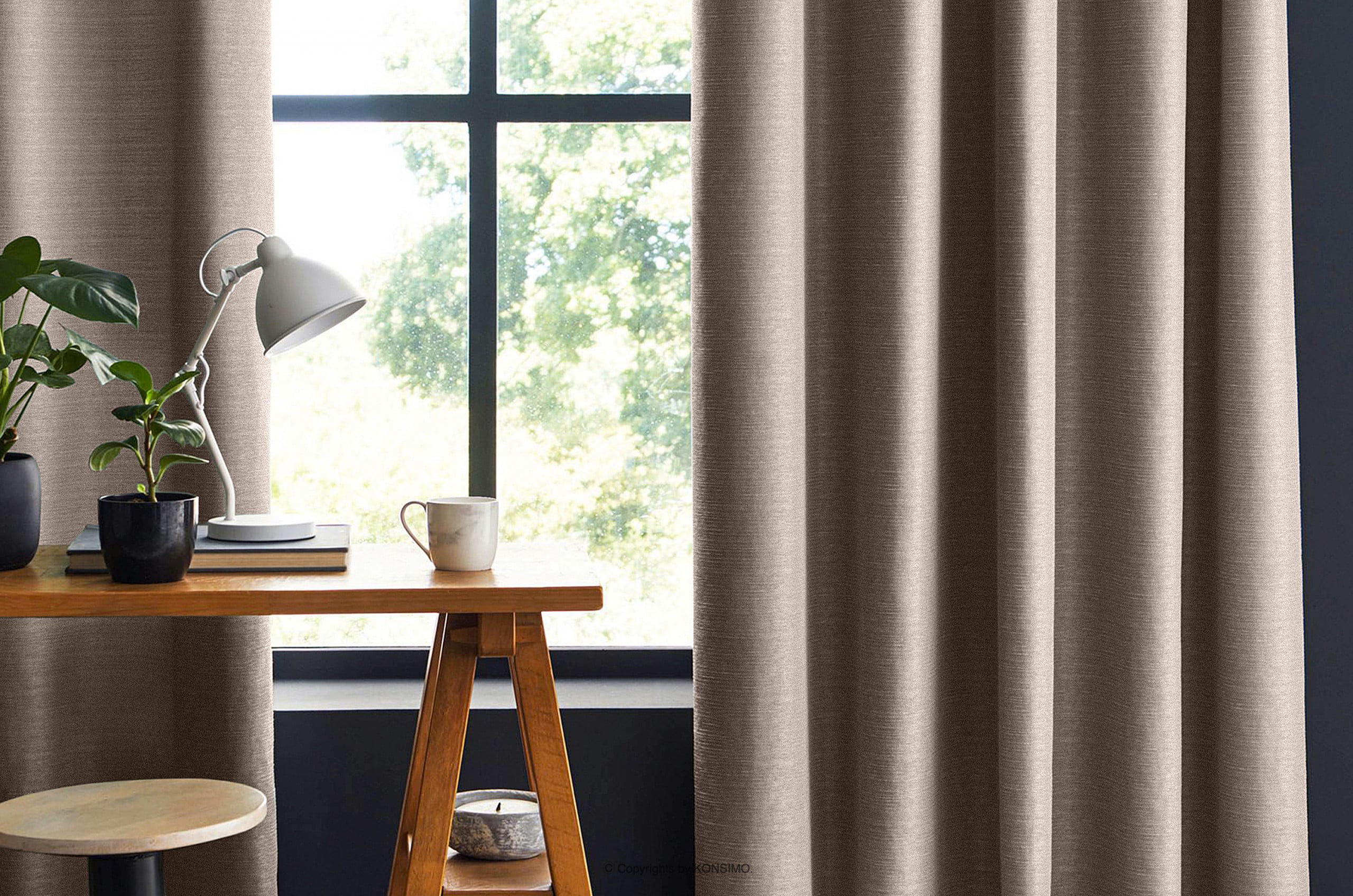 Die Vorhänge LUTES bestehen aus hochwertigen Materialien und dank ihrer einzigartigen Eigenschaften können Sie ganz einfach die Menge des einfallenden Lichts reduzieren und sich auch von den Nachbarn isolieren. Bei der Gestaltung des Interieurs ist es wichtig, praktische und beeindruckende Accessoires zu berücksichtigen, die den Wohnungsstil ergänzen. Sie verfügen über Ösen, die das Aufhängen erleichtern und dem Raum einen Hauch von Modernität verleihen.