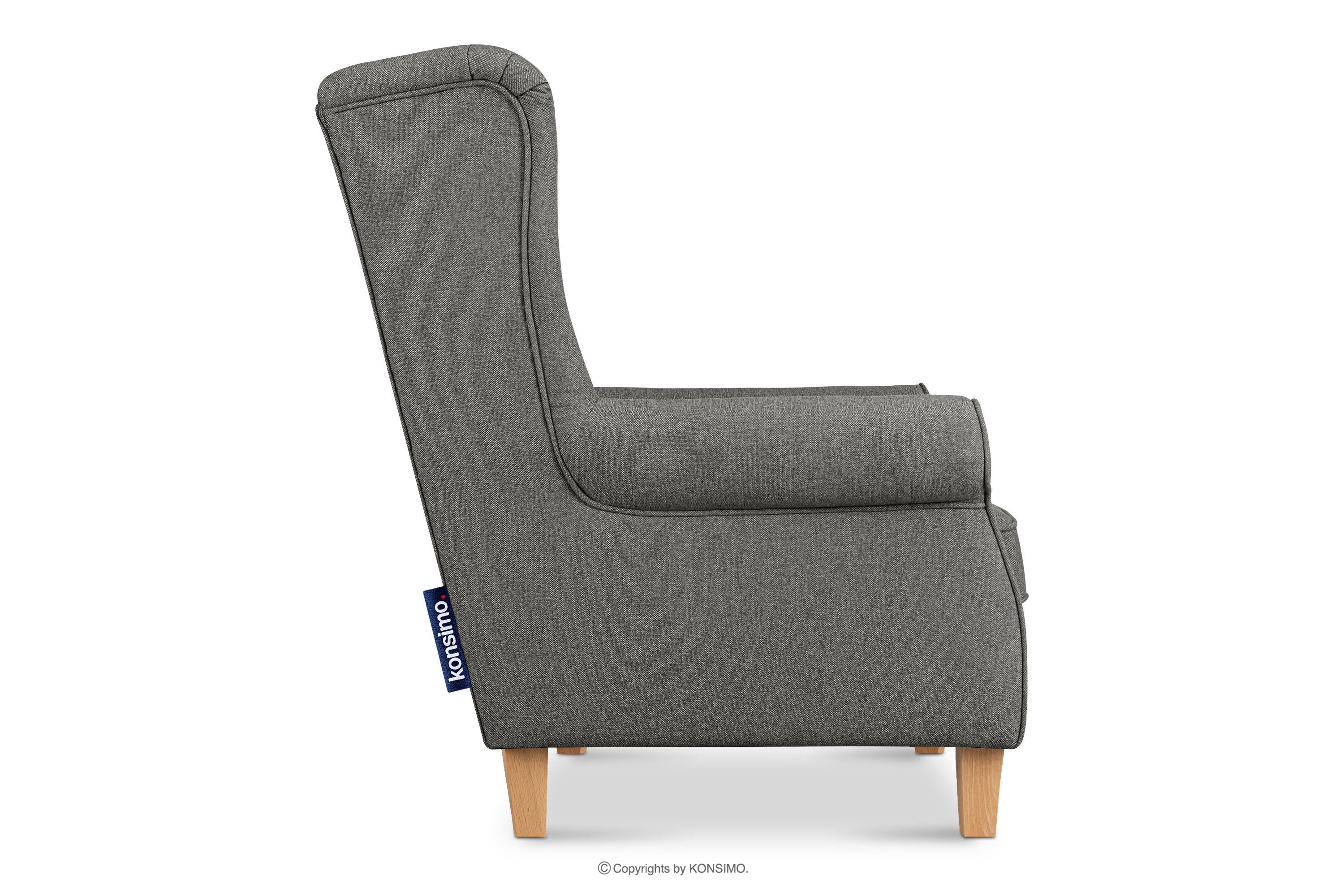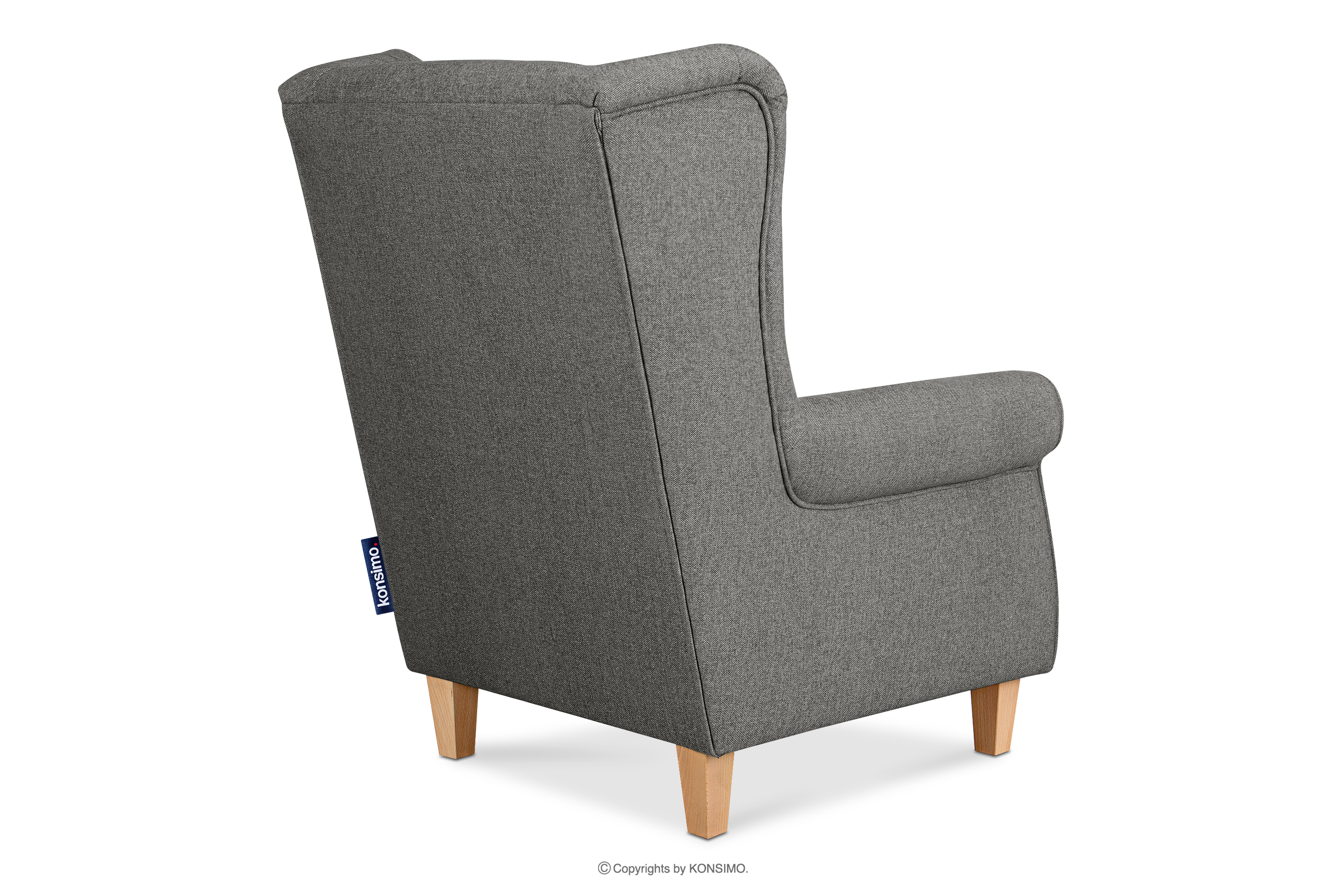 Der Ohrensessel Vintage auf Holzbeinen grau/buche ist ein echtes Schmuckstück in der Welt der Einrichtungstrends, das hervorragenden Komfort und einzigartiges Design im skandinavischen Stil vereint. Er ist aus strapazierfähigem Webstoff gefertigt, der sehr widerstandsfähig gegen Pilling und Fuseln ist. Es passt perfekt in skandinavische und minimalistische Innenräume und verleiht ihnen einen gemütlichen und originellen Charakter.