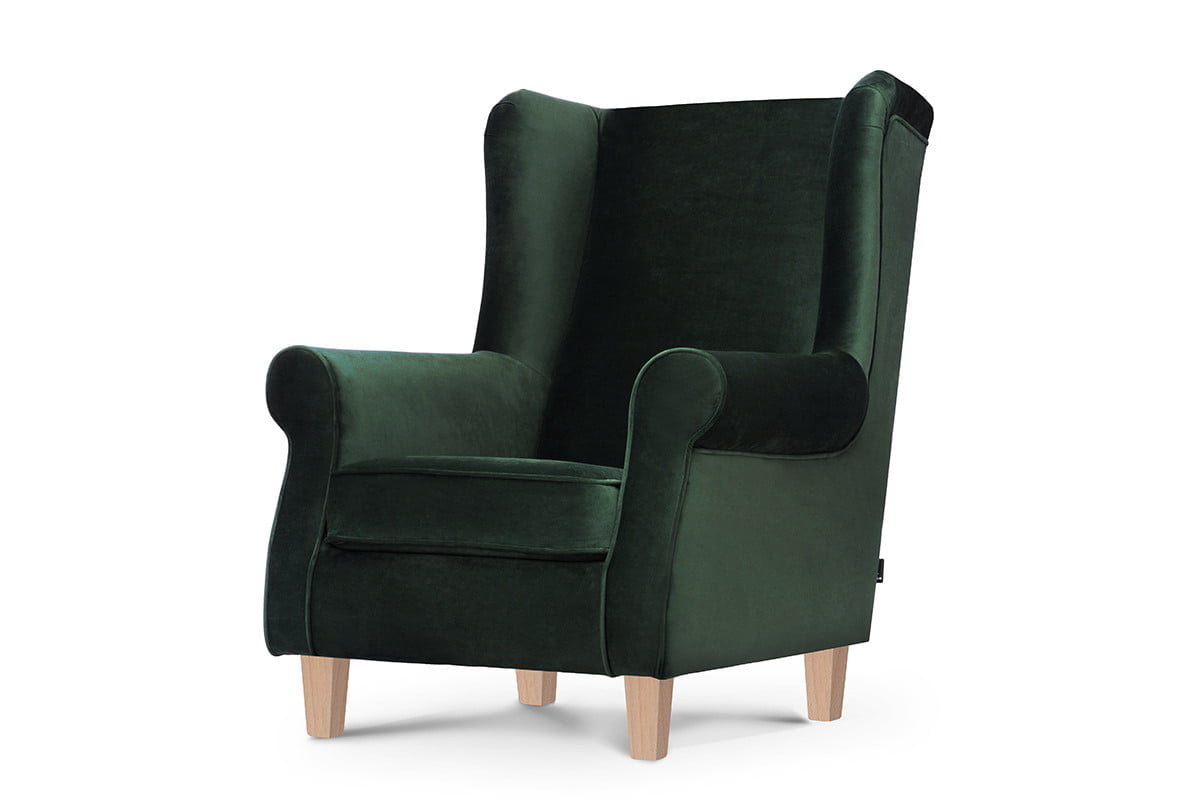 für das Produkt Ohrensessel Flaschengrün, Samt, mit Holzbeinen