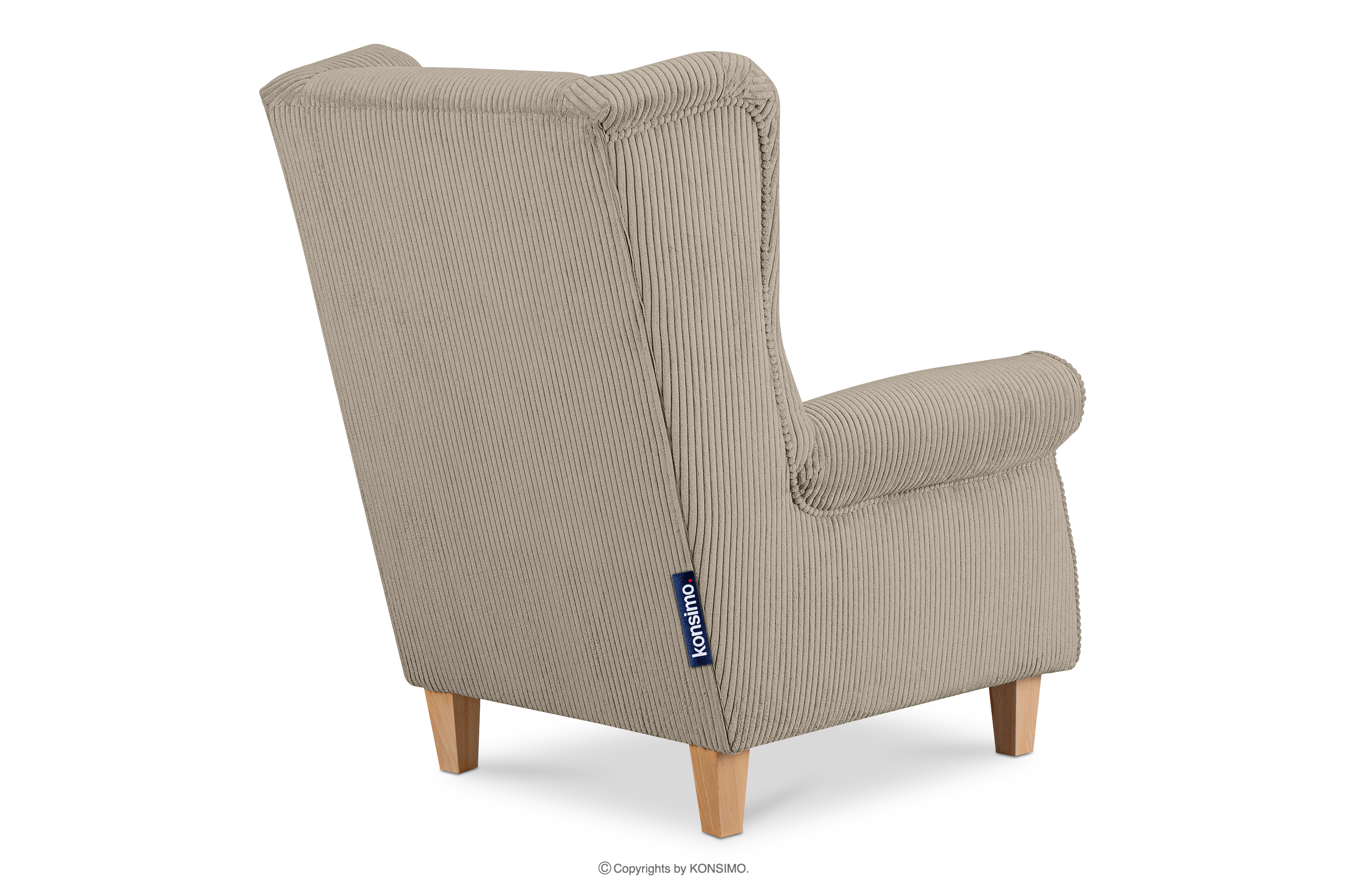 für das Produkt Kordstoff Ohrensessel auf Holzbeinen hellbeige/ Buche
