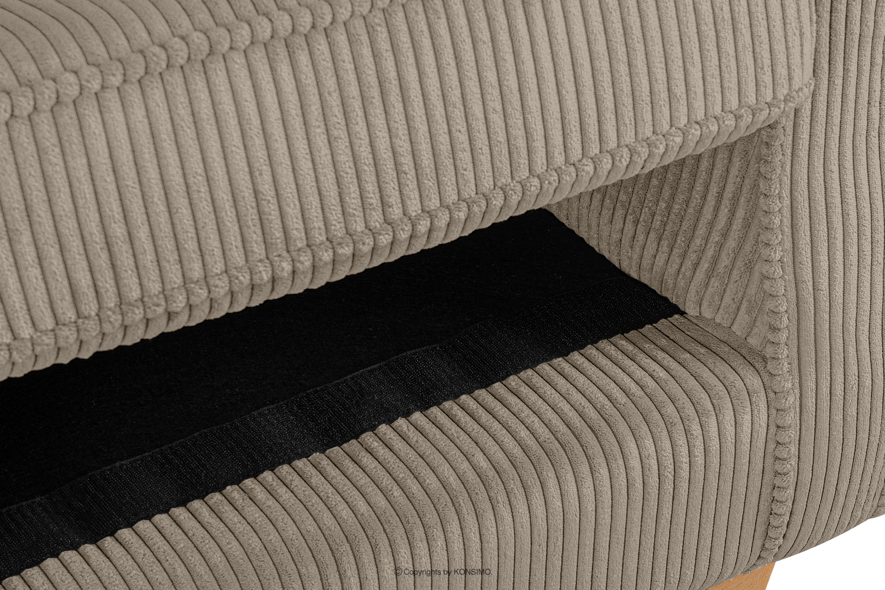 Der Ohrensessel aus Cord auf Holzbeinen in Hellbeige/Buche ist ein echtes Schmuckstück in der Welt der Einrichtungstrends, das hervorragenden Komfort und einzigartiges Design im skandinavischen Stil vereint. Er ist aus strapazierfähigem Webstoff gefertigt, der sehr widerstandsfähig gegen Pilling und Fusseln ist. Es passt perfekt in skandinavische und minimalistische Innenräume und verleiht ihnen einen gemütlichen und originellen Charakter.