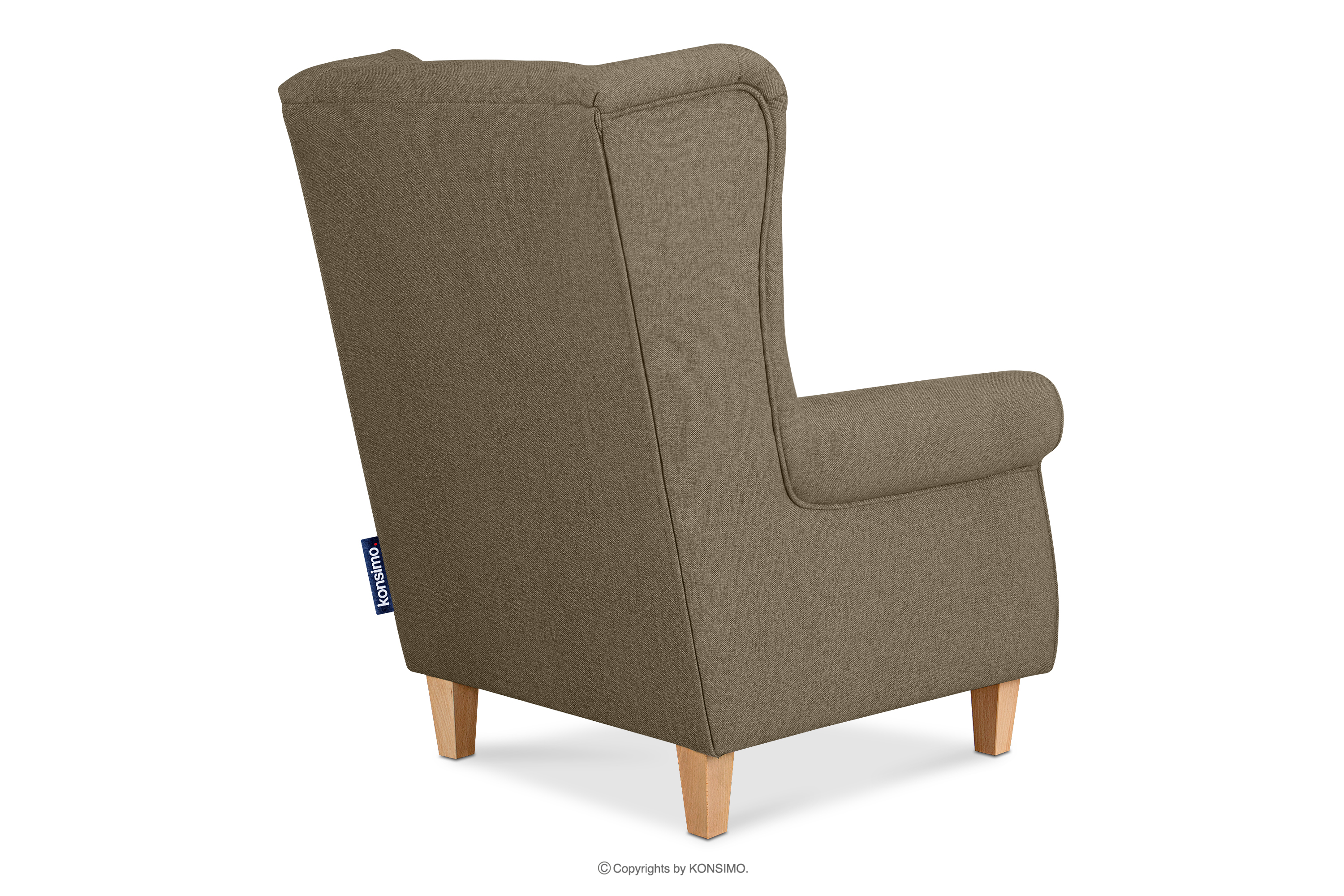 für das Produkt Ohrensessel aus Webstoff braun/ Buche