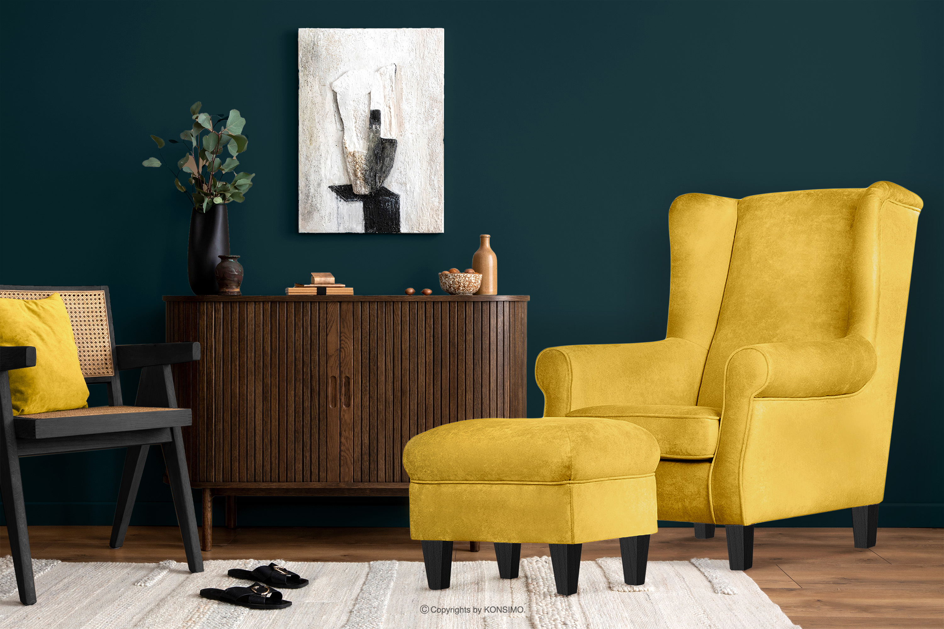 für das Produkt Ohrensessel & Pouf-Set in gelb/schwarz