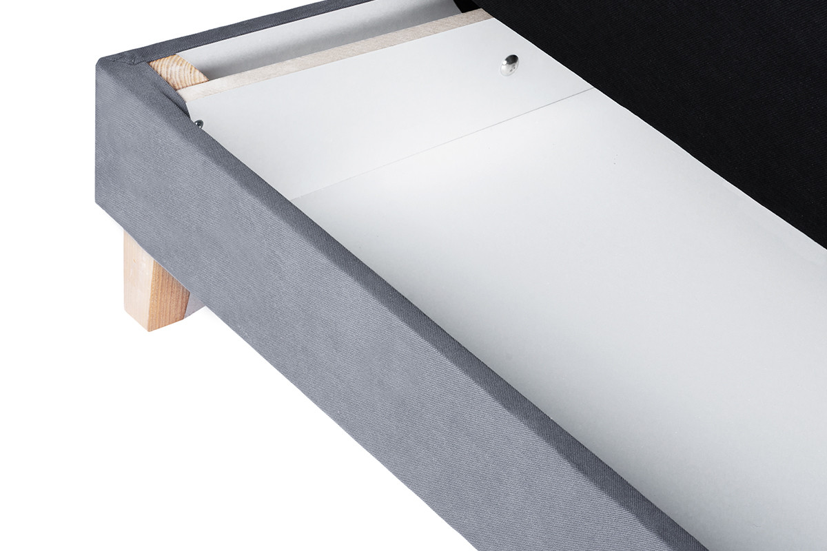 Es eignet sich hervorragend als Schlafcouch für Gäste und als Grundbett in kleineren Wohnungen oder Studentenwohnheimen. Die Sitzfläche besteht aus hochelastischem Schaumstoff und Wellenfedern, was einen komfortablen Gebrauch und eine hervorragende Entspannung ermöglicht. Der Bettkasten ist mit Belüftungsöffnungen ausgestattet. Die Beine bestehen aus Buchenholz und haben eine Höhe von 11 cm.