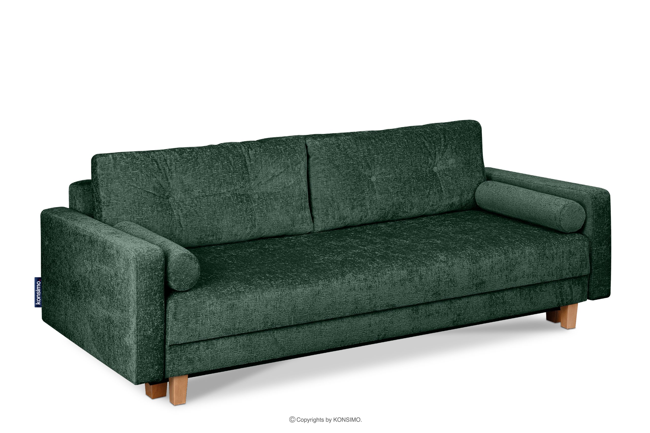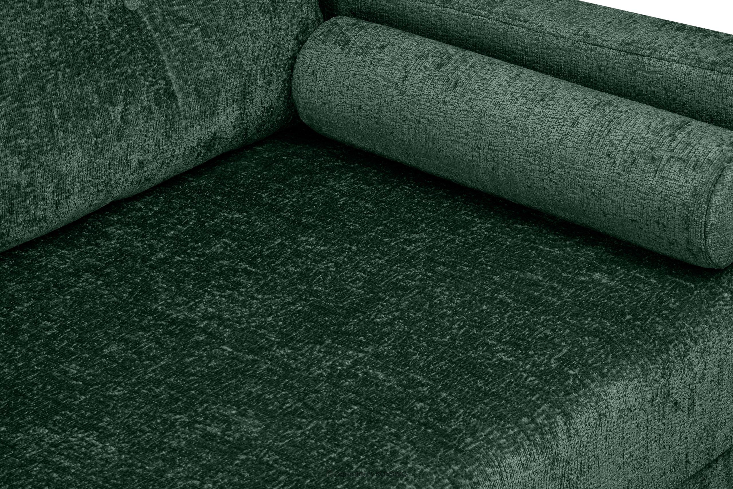 Ein stilvolles Sofa ist eines der wichtigsten Elemente eines gut eingerichteten Wohnzimmers. Das Schlafsofa mit grüner Steppung hat eine Schlaffunktion - ideal für Übernachtungsgäste. Der Mechanismus zum schnellen und automatischen Aufklappen des Sofas durch Kippen der Rückenlehne nach vorne macht es einfach zu benutzen. Der Innencontainer bietet den nötigen Stauraum für die Bettwäsche.