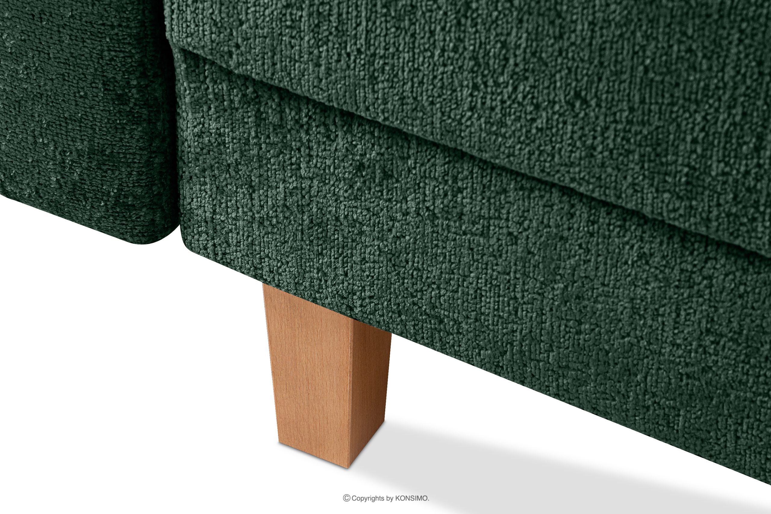 Der Bezug aus hochwertigem, chenilleähnlichem Webstoff zeichnet sich durch seine Langlebigkeit und Widerstandsfähigkeit gegen Beschädigungen aus. Zwei Rückenkissen und zwei Zierkissen erhöhen den Komfort dieses modernen Sofas. Dank der in ästhetischen Tunneln versteckten Reißverschlüsse können die Bezüge leicht abgenommen und schnell gewaschen werden. Der Komfort wird durch die mittelfeste Sitzfläche aus Bonellfedern, Oval und Polyurethanschaum gewährleistet. Er passt perfekt in ein minimalistisch eingerichtetes Wohnzimmer. Die Holzbeine und das hochwertige Material verleihen dem Sofa ERISO Eleganz und unterstreichen seinen skandinavischen Stil. Die gesamte Struktur ist stabil und das Möbelstück ist langlebig, so dass es eine lange Zeit halten sollte.