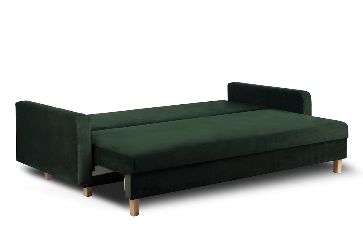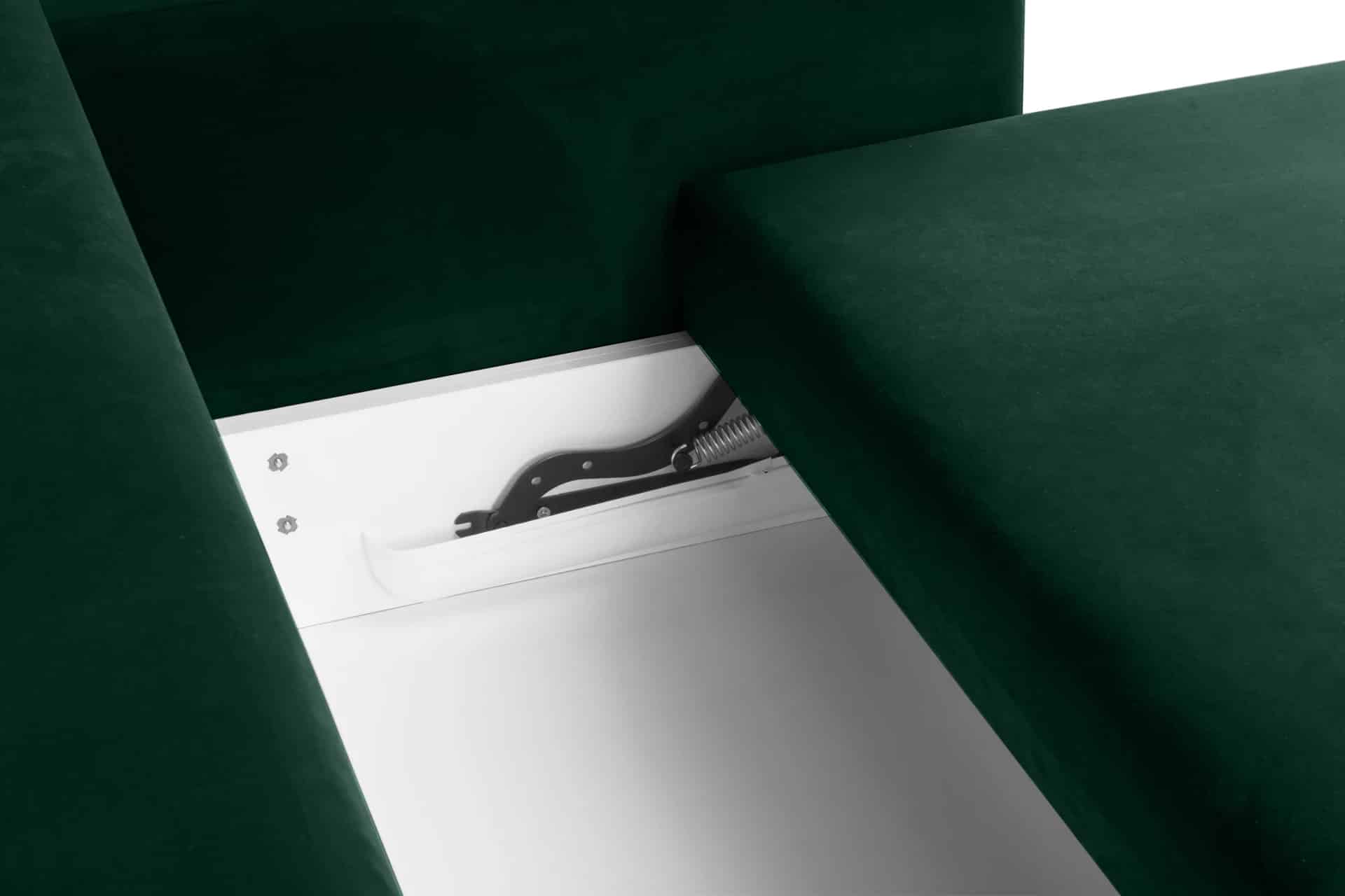 Ein stilvolles Sofa ist eines der wichtigsten Elemente einer gut ausgestatteten Wohnzimmer. Das 3-Sitzer-Schlafsofa aus Samt in Flaschengrün aus der ERISO-Kollektion verfügt über eine Schlaffunktion und eignet sich hervorragend für Übernachtungsgäste. Der Mechanismus zum schnellen und automatischen Ausklappen durch Vorwärtsneigen der Rückenlehne erleichtert die Nutzung des Möbels. Ein interner Stauraum bietet ausreichend Platz zum Aufbewahren von Bettwäsche.