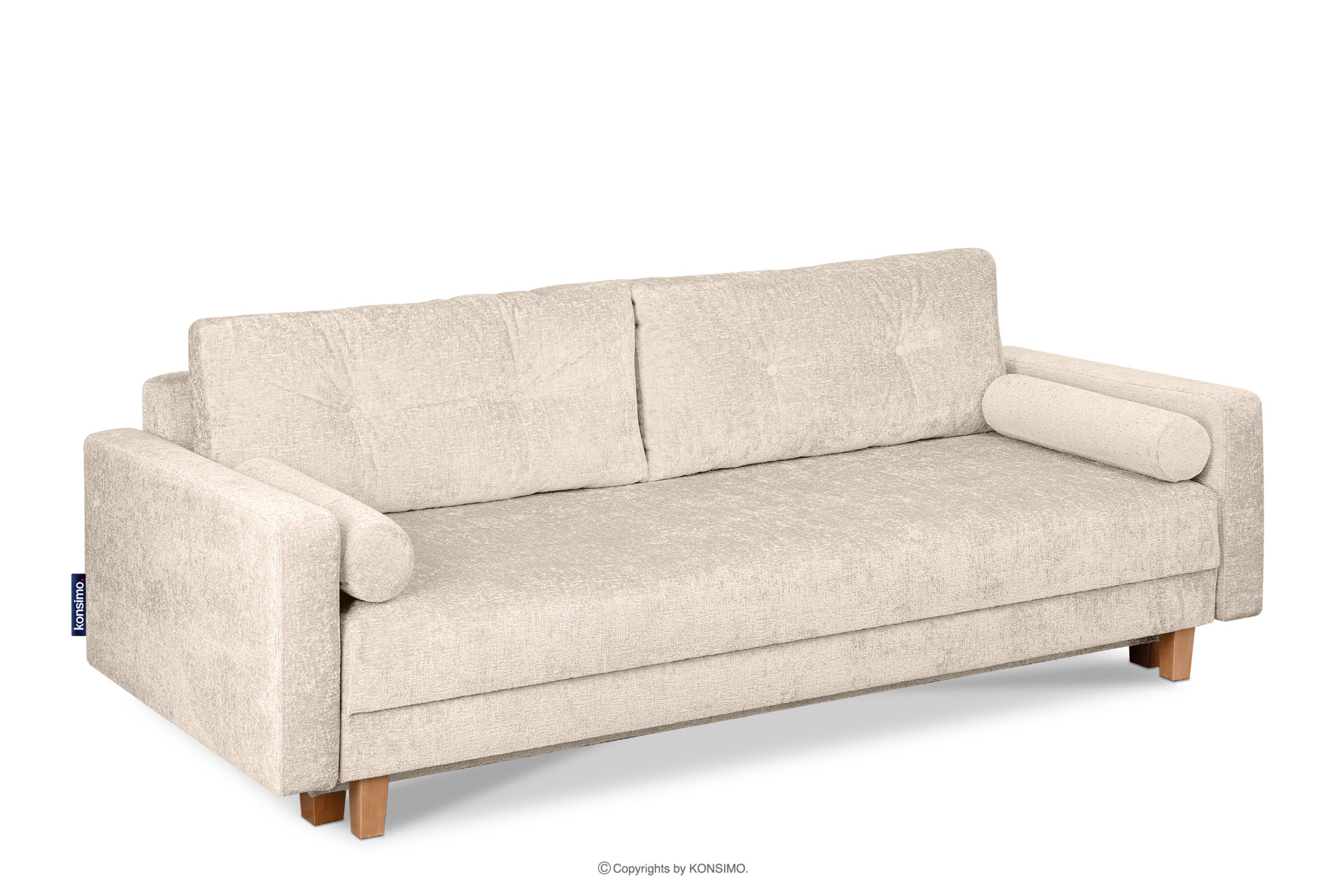 Ein stilvolles Sofa ist eines der wichtigsten Elemente eines gut eingerichteten Wohnzimmers. Das Sofa mit ecrufarbener Steppung hat eine Schlaffunktion - ideal für Übernachtungsgäste. Der Mechanismus zum schnellen und automatischen Aufklappen des Sofas durch Kippen der Rückenlehne nach vorne macht es einfach zu benutzen. Der Innencontainer bietet den nötigen Stauraum für die Bettwäsche.