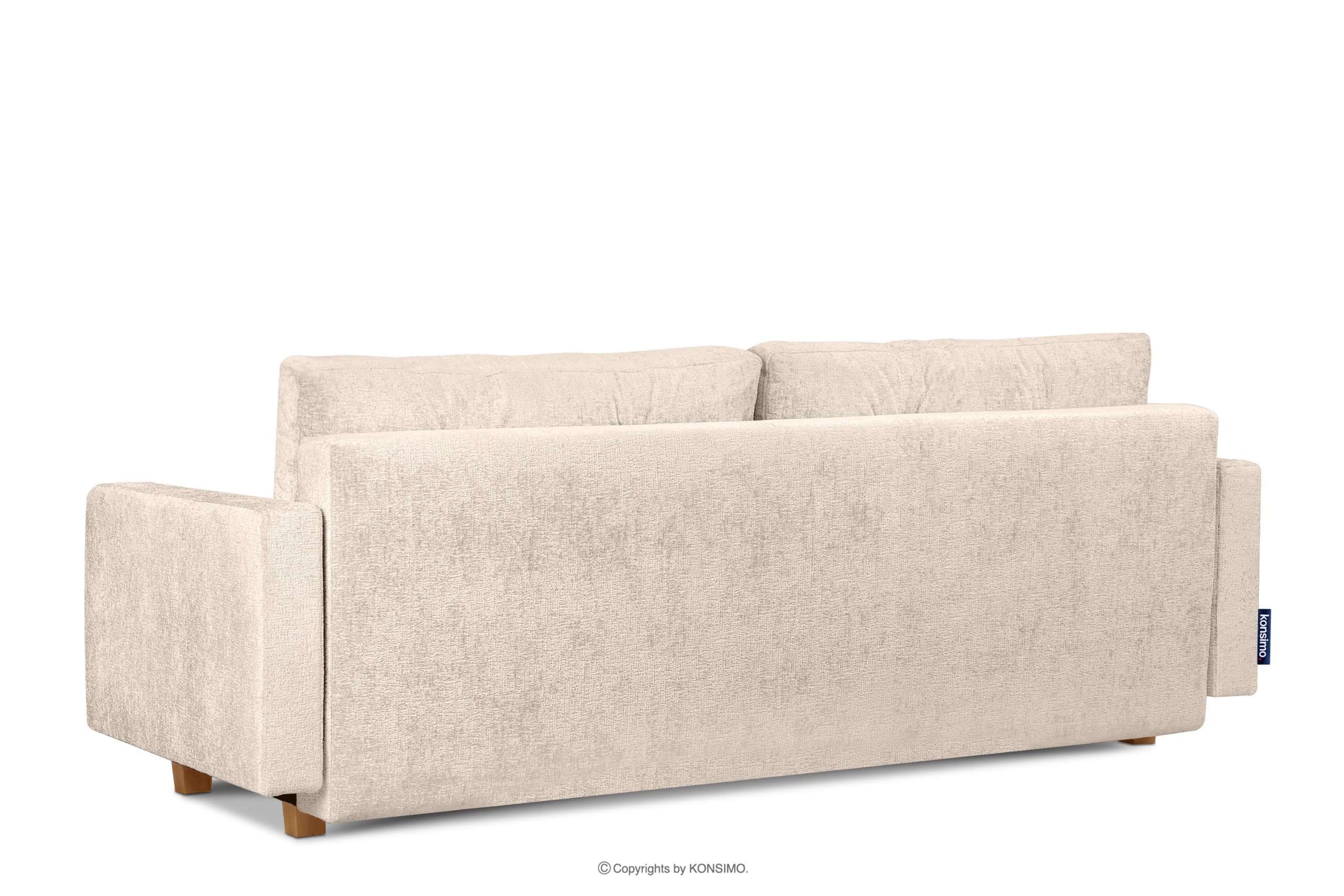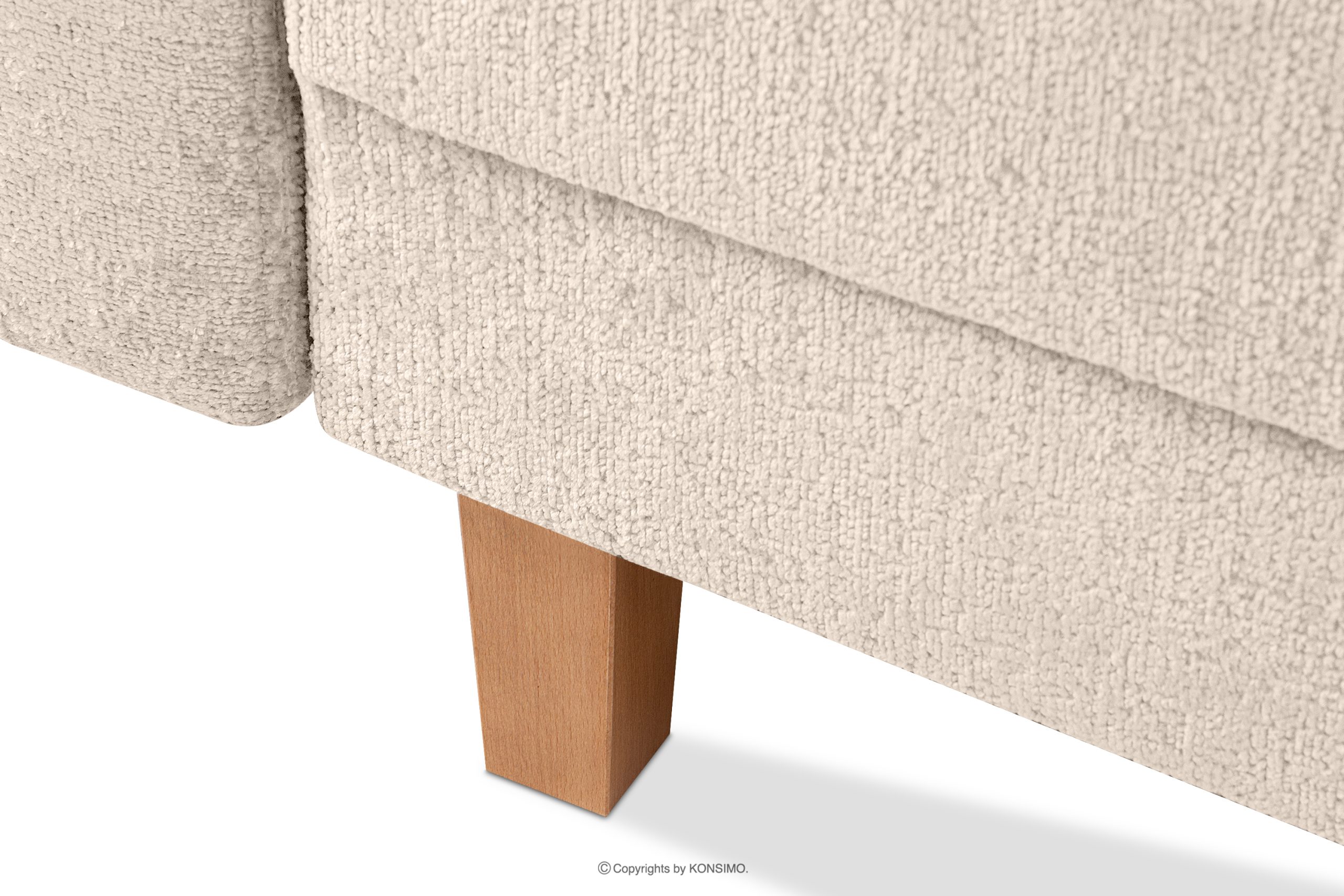 Der Bezug aus hochwertigem, chenilleähnlichem Webstoff zeichnet sich durch seine Langlebigkeit und Widerstandsfähigkeit gegen Beschädigungen aus. Zwei Rückenkissen und zwei Zierkissen erhöhen den Komfort dieses modernen Sofas. Dank der in ästhetischen Tunneln versteckten Reißverschlüsse können die Bezüge leicht abgenommen und schnell gewaschen werden. Der Komfort wird durch die mittelfeste Sitzfläche aus Bonellfedern, Oval und Polyurethanschaum gewährleistet. Er passt perfekt in ein minimalistisch eingerichtetes Wohnzimmer. Die Holzbeine und das hochwertige Material verleihen dem Sofa ERISO Eleganz und unterstreichen seinen skandinavischen Stil. Die gesamte Struktur ist stabil und das Möbelstück ist langlebig, so dass es eine lange Zeit halten sollte.